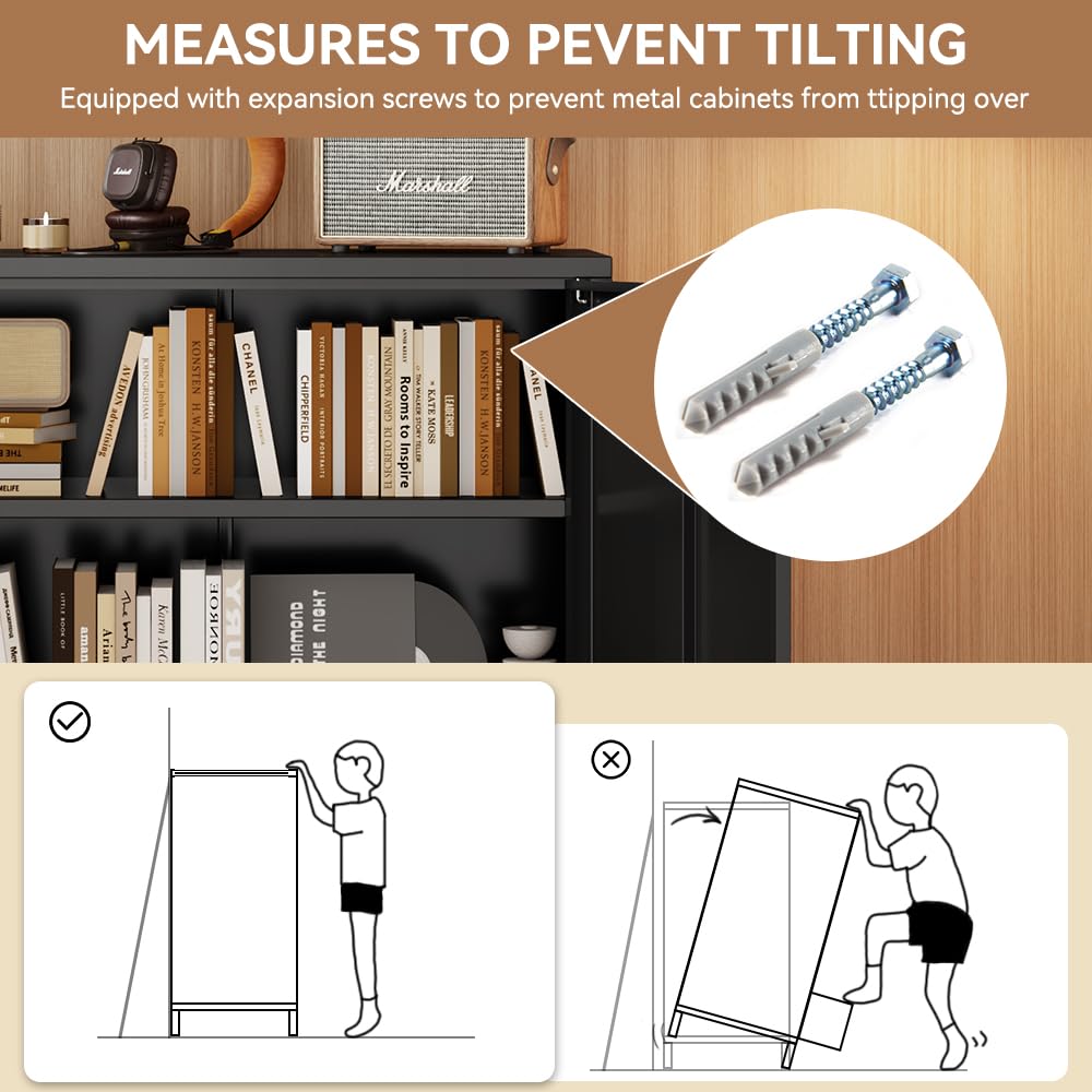 SunLinkSan Metal Accent Cabinet,Sideboard Buffet Cabinet for Living Room,Bed Room,Home,Hotel,Office,Garage,School,Kitchen,3-Tier Locker Storage Cabinet,2 Removable Shelves. (Metal Door, Black)