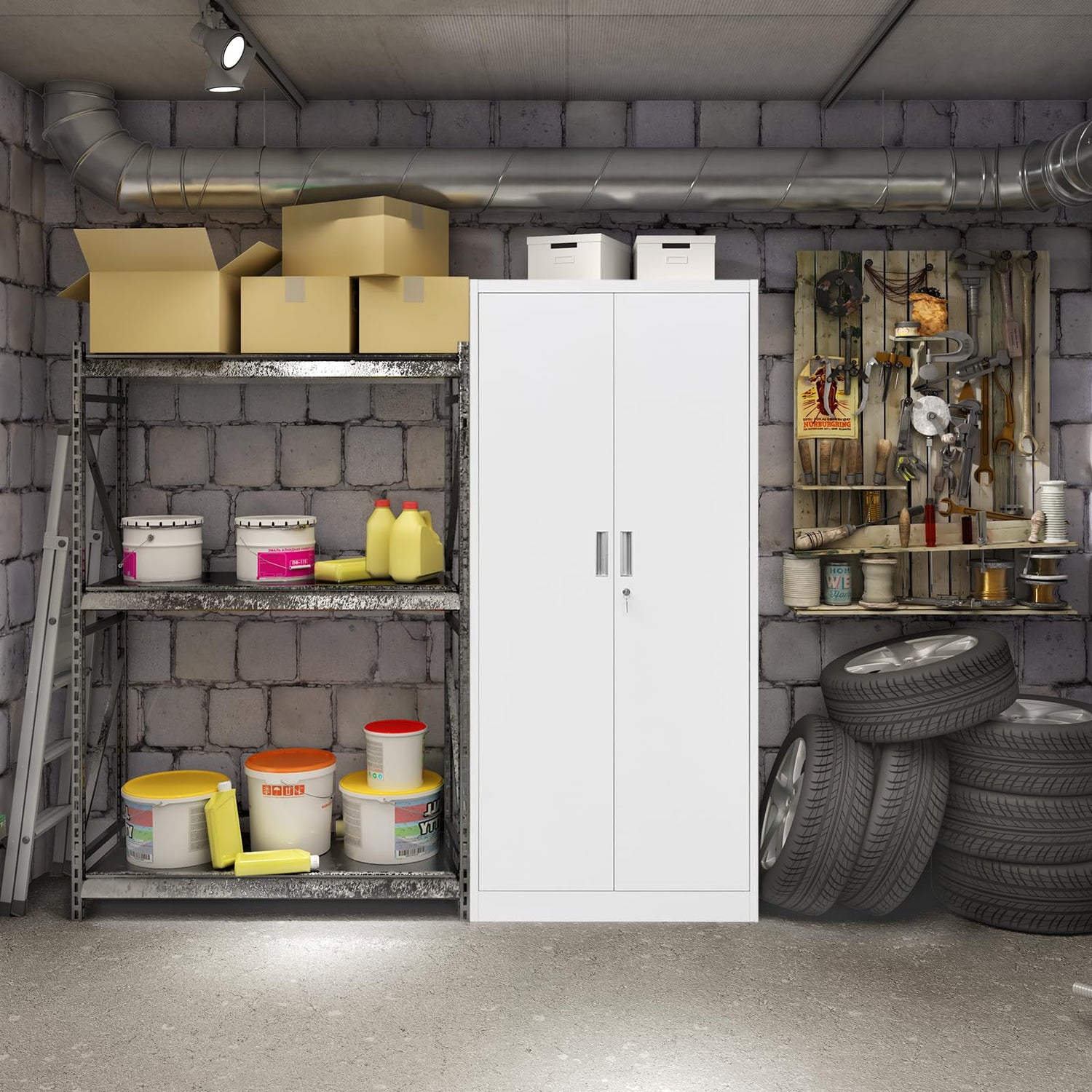 • 【PRACTICAL DESIGN】Metal cabinet features magnetic double-wall doors, making it tough and quite user-friendly. It’s perfect for any place where a storage solution is needed — the home, basement, office, garage, warehouse and more.