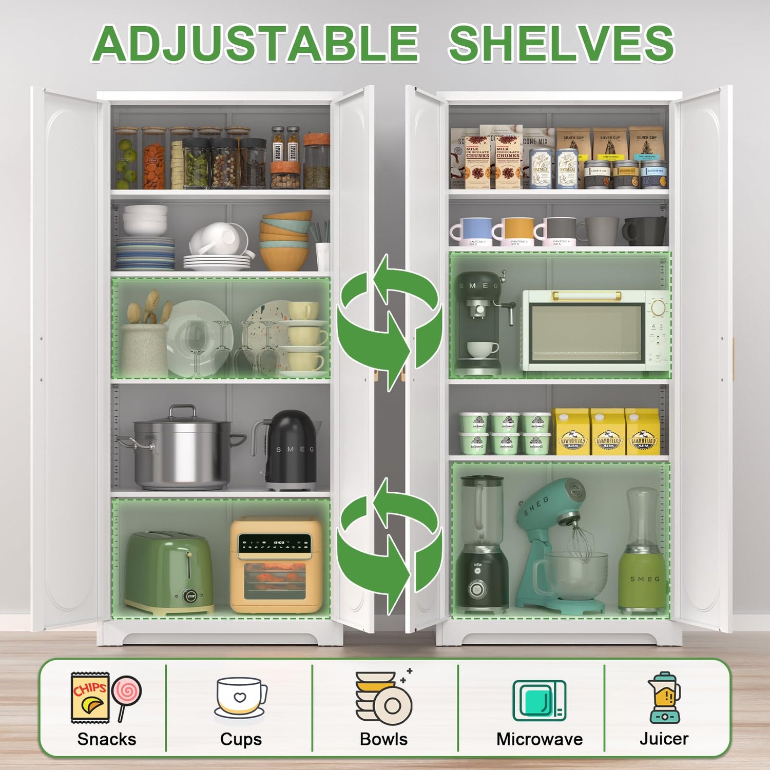 TIMELESS PIECES Kitchen Pantry Cabinet,Pantry Storage Cabinet, 71" Tall Kitchen Storage Cabinets with Doors and 4 Adjustable Shelves,Metal Food Pantry Cabinet for Kitchen, Livingroom