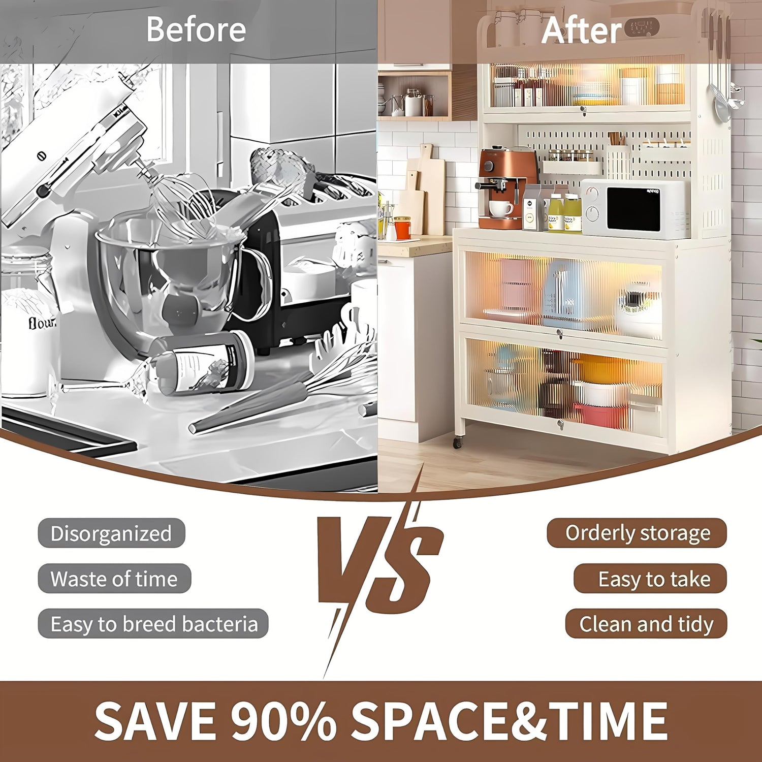 • ★ [FLIP CABINET DOOR]: The kitchens storage cabinets are designed with see-through doors which are made of material Acrylic and Metal. Place kinds of stuff inside the cabinet can be far away from dust, or flip the door to take what you want.