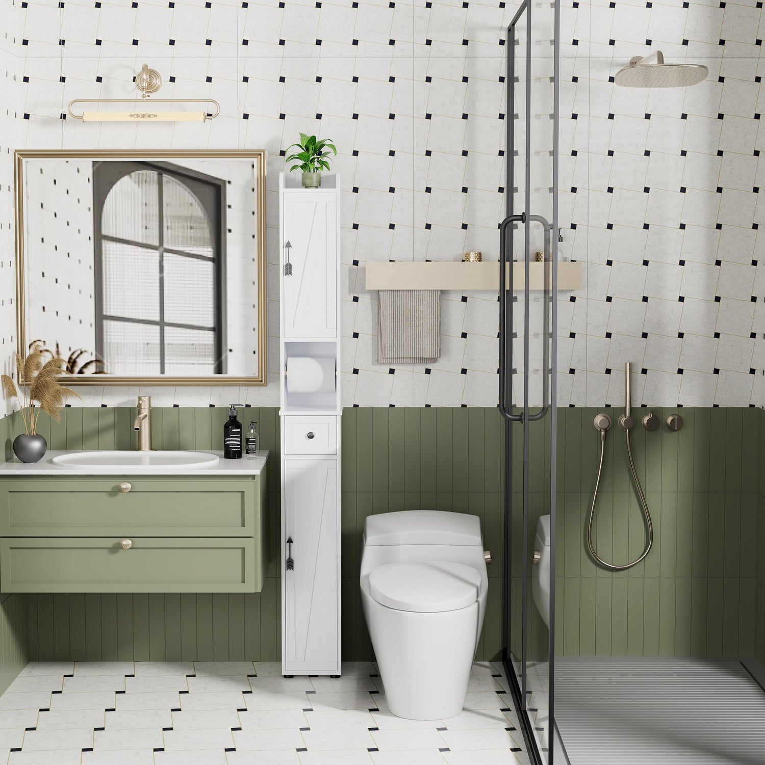 - đăAmple Storage Spaceă: Equipped with multiple storage compartments, drawers, and adjustable shelves, this slim bathroom cabinet with doors provide ample space to neatly organize toiletries, towels, and personal care items, keeping your bathroom tidy and clutter-free.