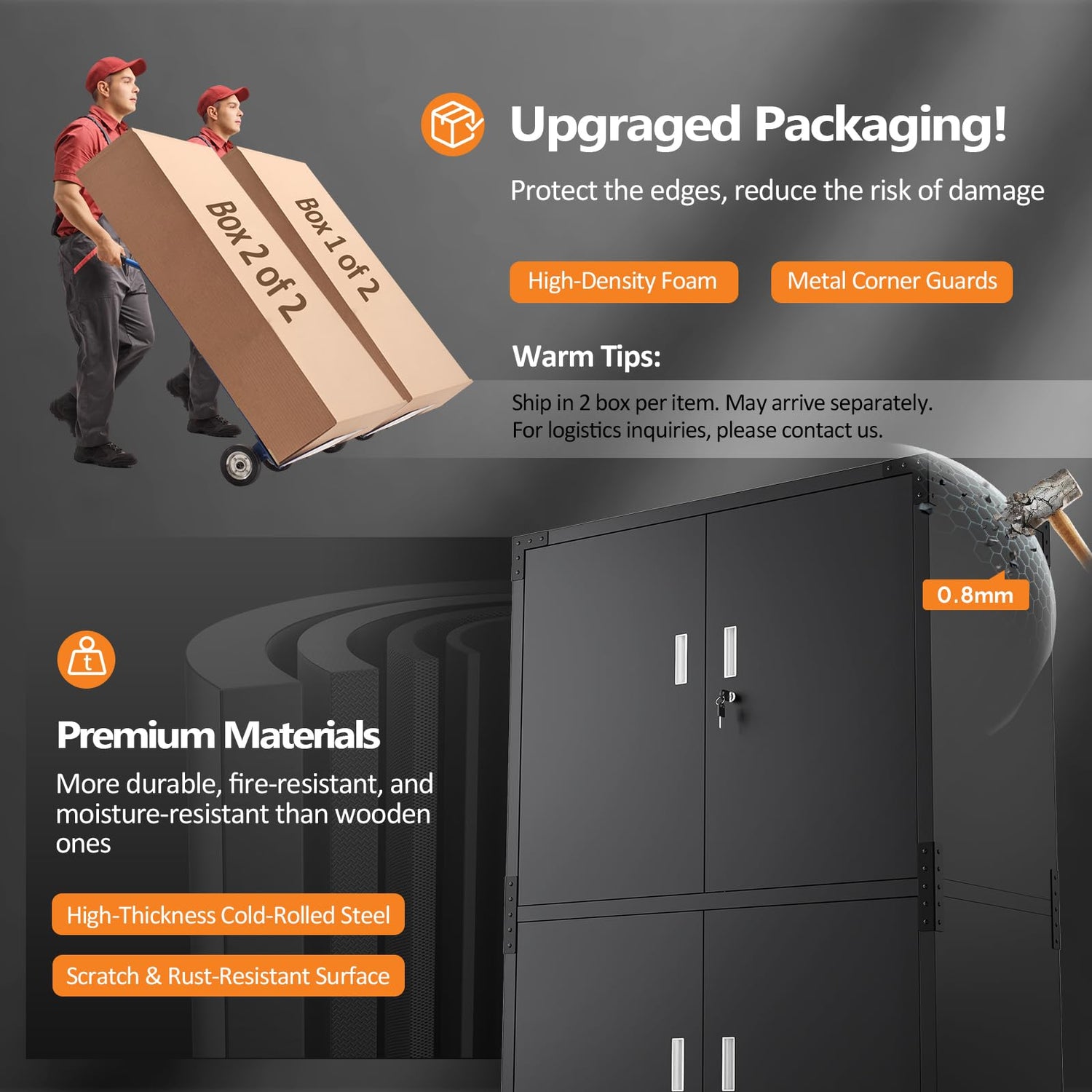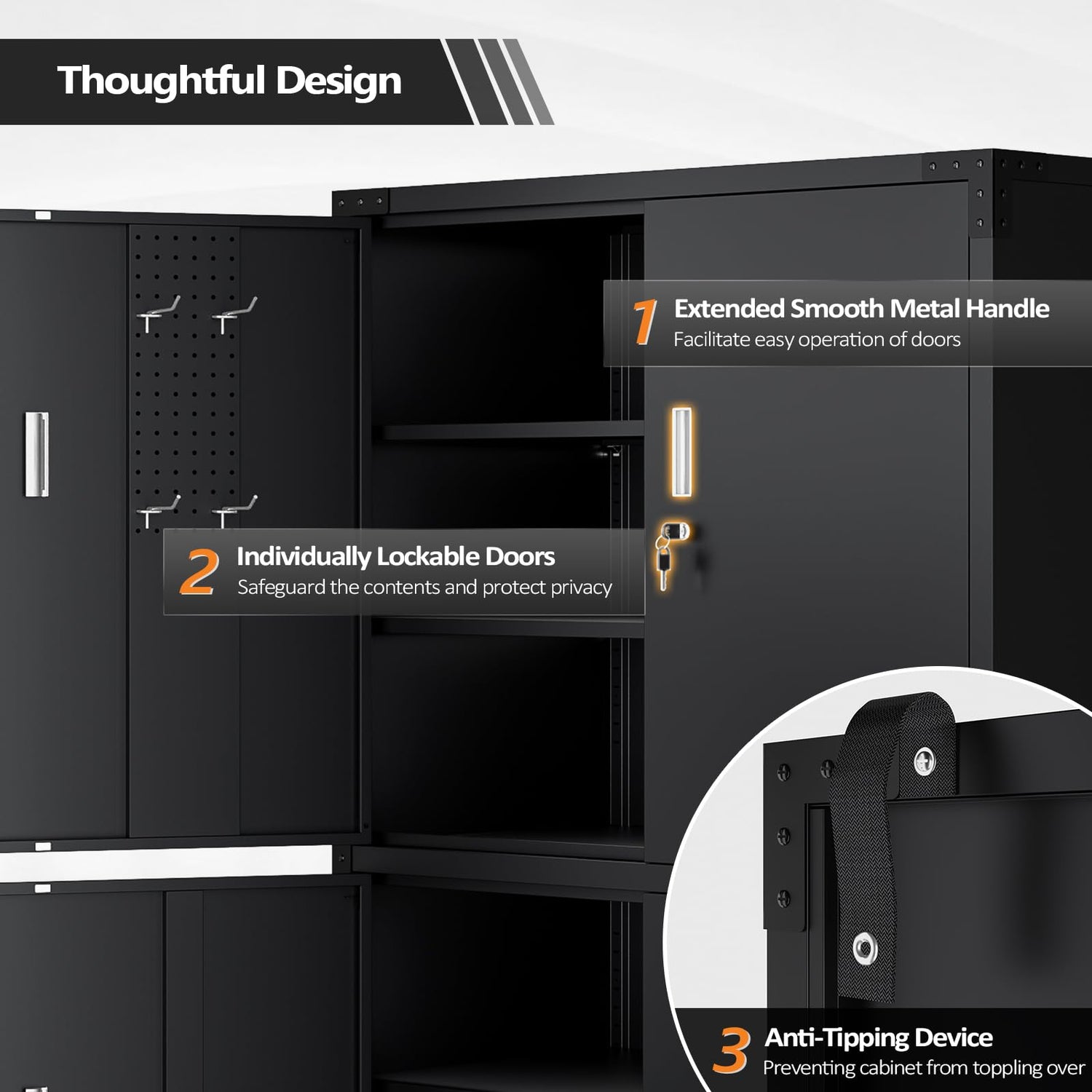 - 【Thoughtful Details】This Steel Cabinet Locker comes with 4 smooth - to - grip metal handles, which are also extra - long for easy grasping. An anti - tipping accessory kit is included to enhance safety and prevent the garage storage cabinet from tipping over.