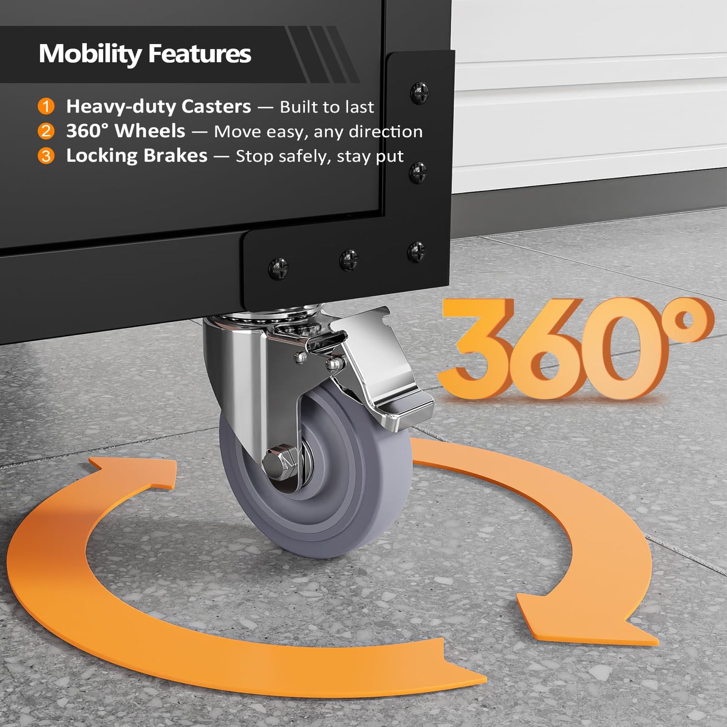 - 【Mobile with Industrial Casters】Equipped with braked universal industrial casters, this Metal Storage Cabinet offers enhanced mobility. The high - strength casters allow you to move this Steel Cabinet Locker easily around your garage or other spaces as needed.