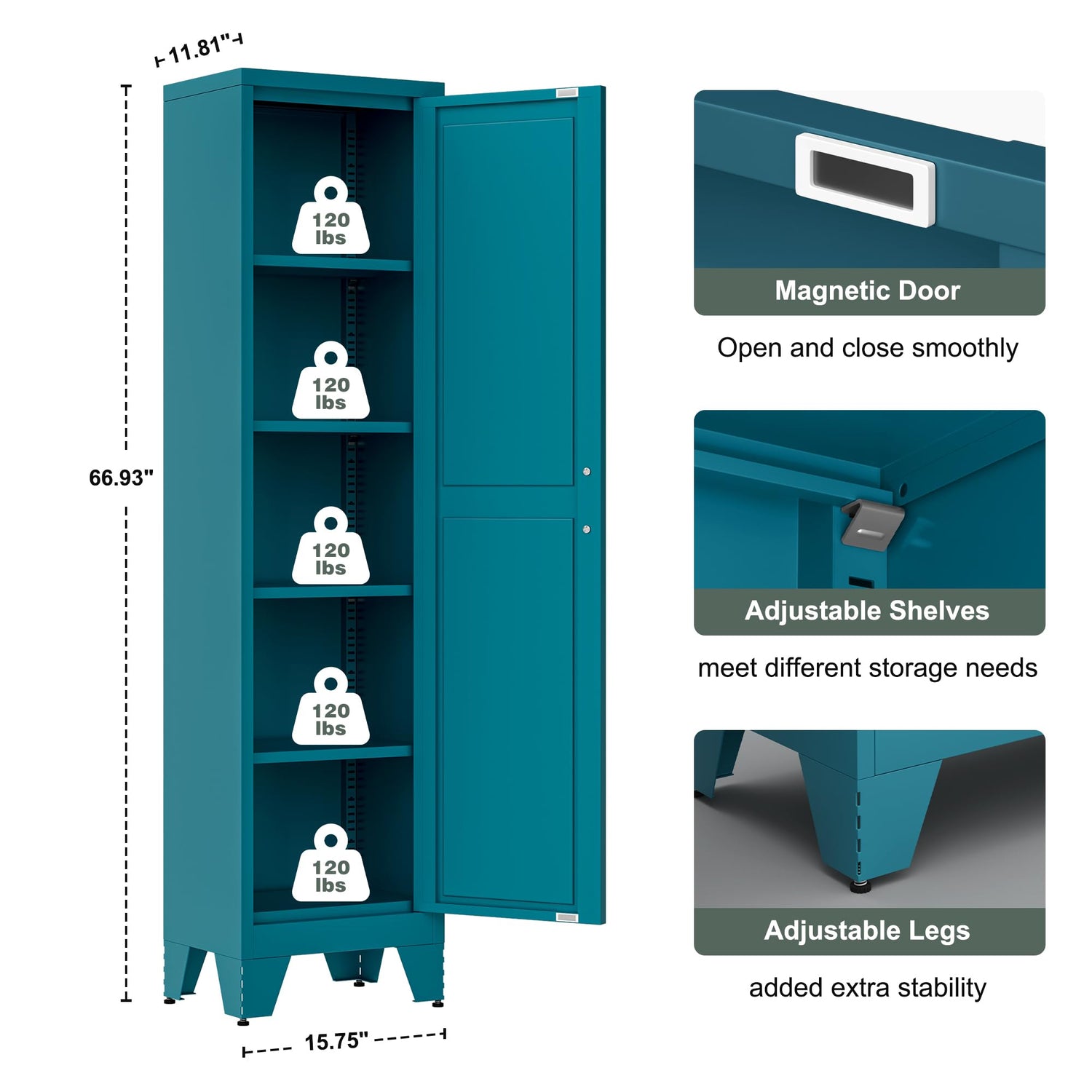 - Material: 67''metal storage cabinet Made from high-quality cold-rolled steel, ensuring the cabinet is strong and reliable.