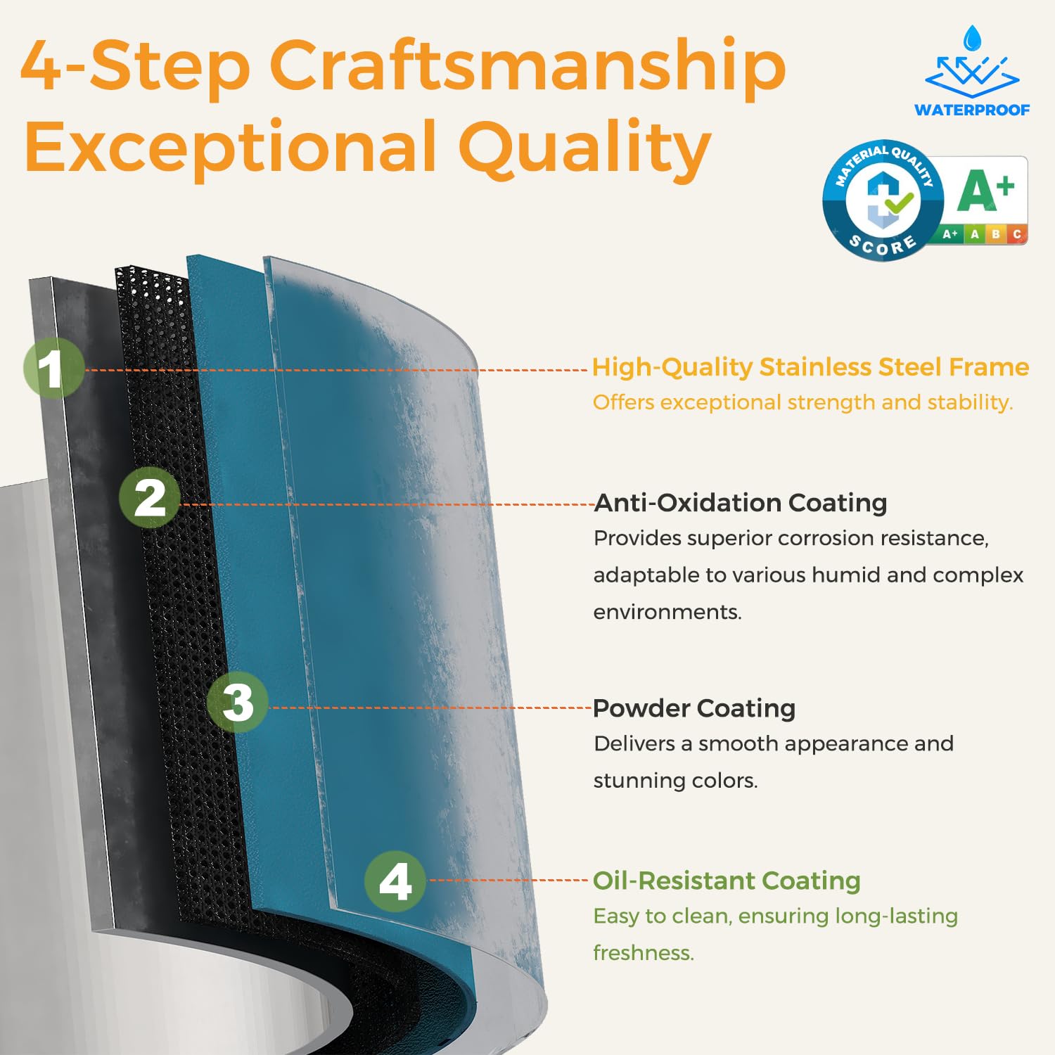 - Finish: A pristine Peacock Blue powder coat offers a fresh and clean look, while providing rust resistance and easy maintenance.