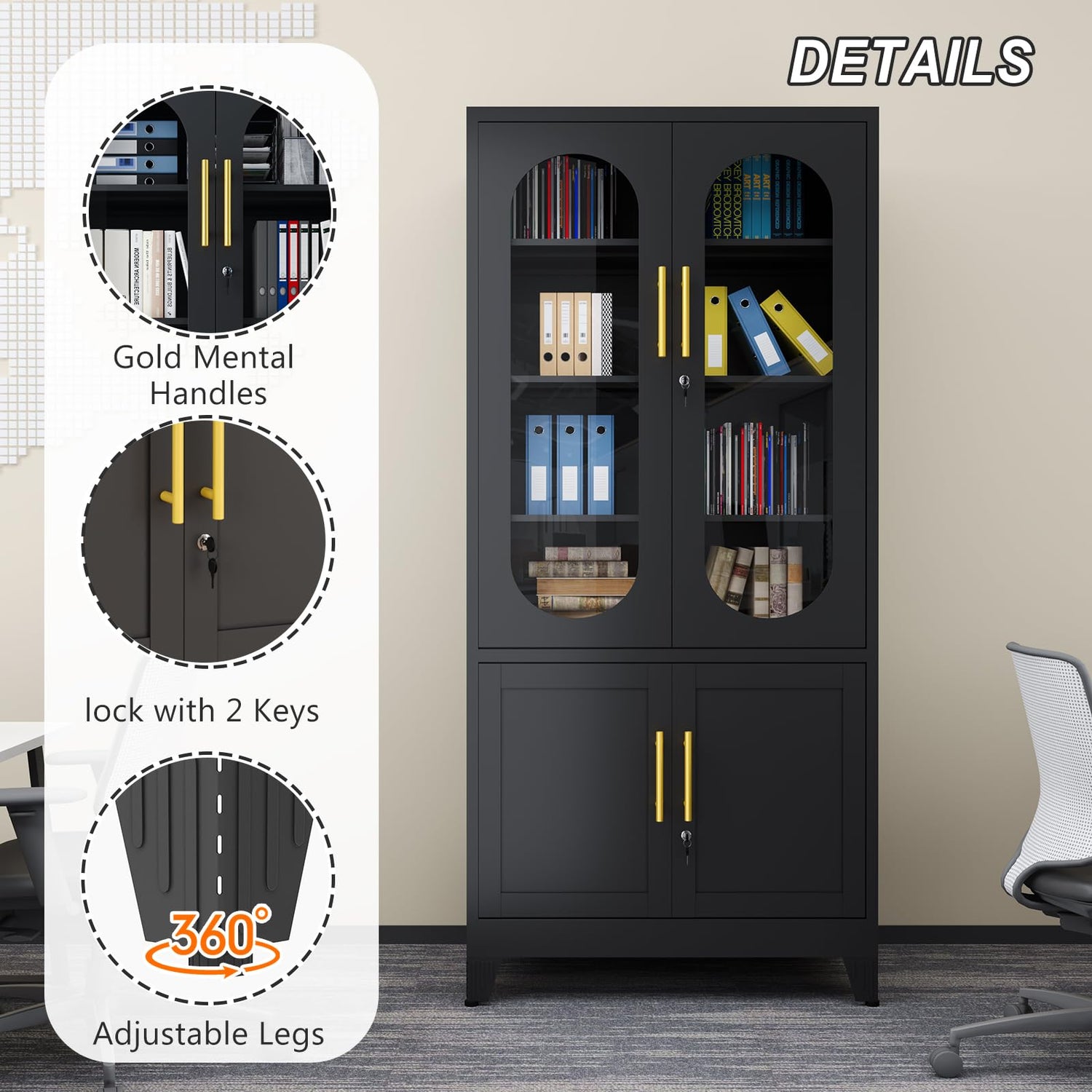 • 【Secure Storage】: garage storage cabinet has four doors, transparent glass door design can be used as a display cabinet, not only with the beauty of the display cabinet, cabinets are equipped with a dual-key security door lock system, providing a stringent protective barrier for your valuable items. The glass display cabinet includes 4 adjustable Leveling feet will help cabinet stay stable on uneven ground, keeping secure and weight-bearing capacity