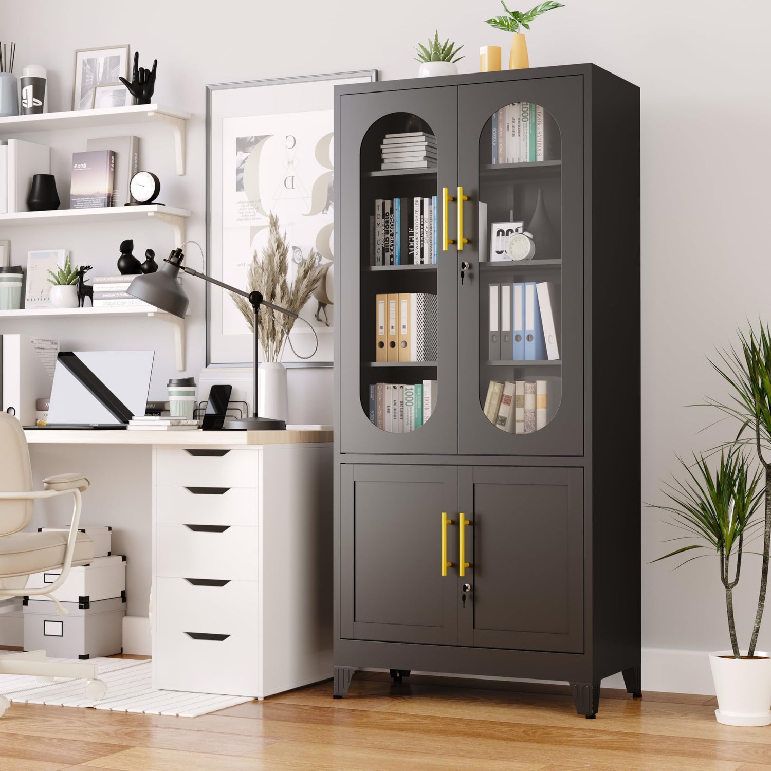 • 【Practical Design】:Our locking cabinet cabinet has 4 foot braces and 4 Adjustable Shelves. our cabinets provide the flexibility to create the perfect storage layout. each shelf can support up to 150 LBS, making it suitable for storing heavy books or delicate items without compromising its integrity! Adjust the shelves to accommodate objects of different sizes, maximizing your storage space and convenience