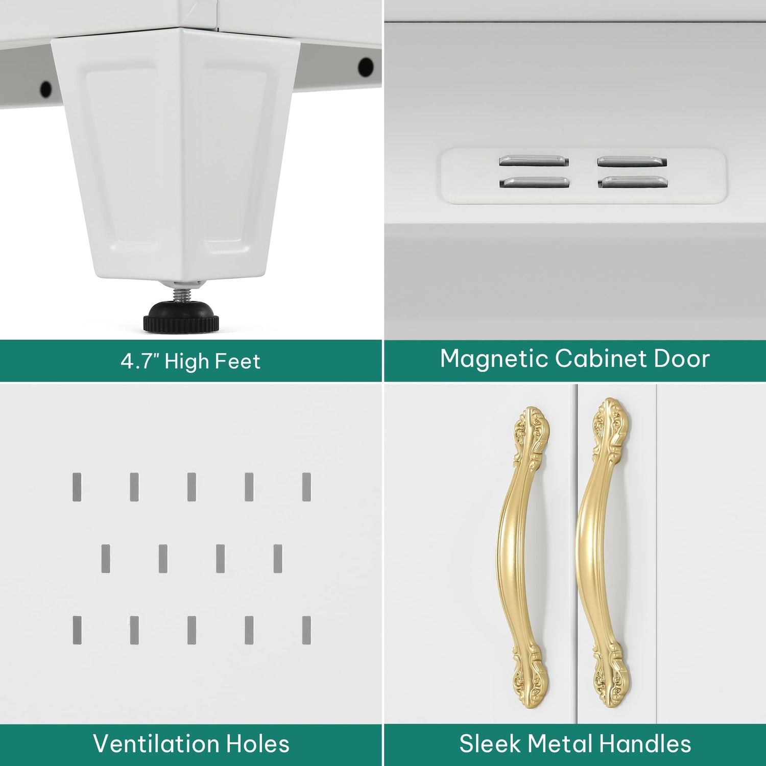 - Sturdy and Safe Design: Crafted from solid steel, this metal kitchen storage cabinet is built to last. The tip-resistant kit keeps it steady, while the magnetic door closure ensures nothing slips out. Safety and durability combined
