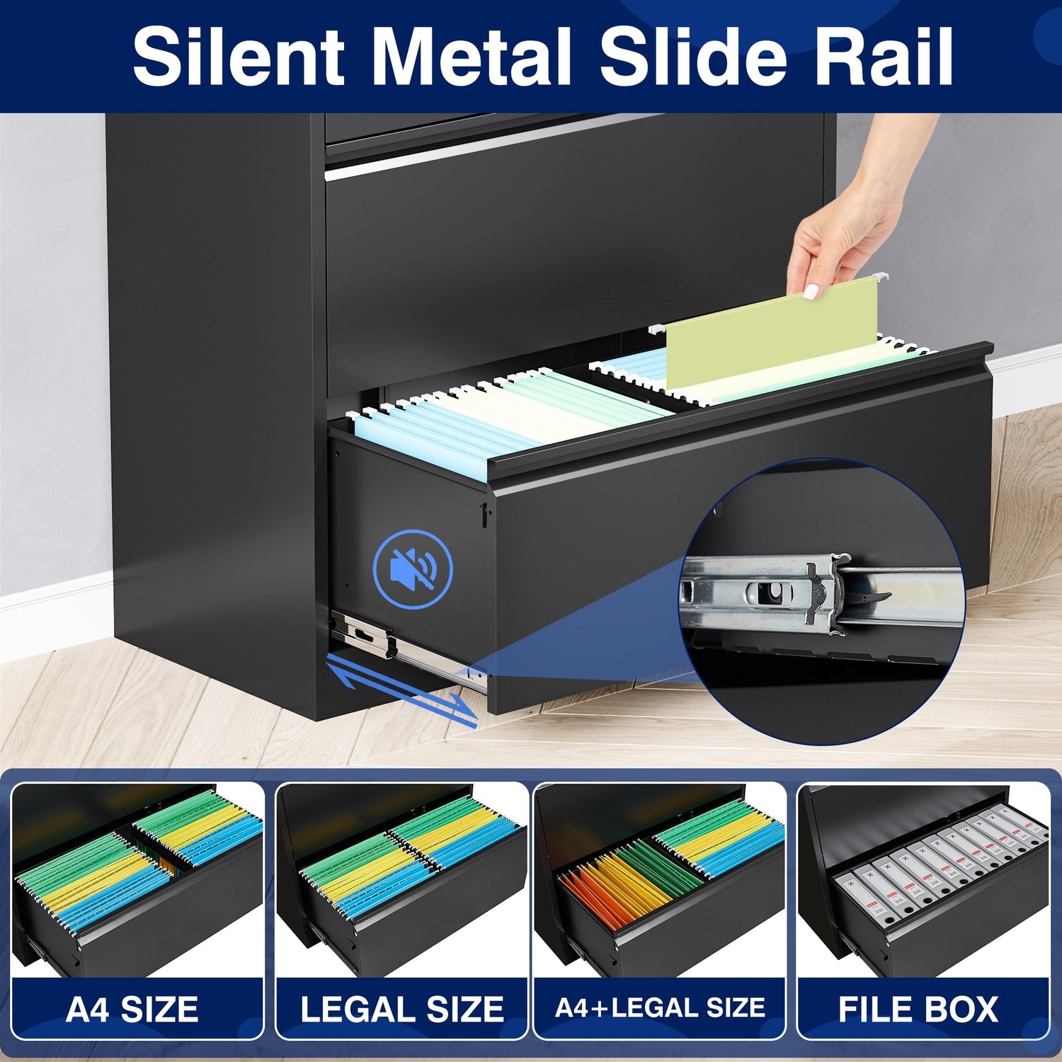 - 【Full-Extendable Drawer】As Equipped with full-extendable drawer runners, So no parts will hinder you managing files. Yizosh office storage file cabinet with drawers provides infinite convenience, high-quality ball bearing glides for easy to open and close the drawers. No loud bangs and crashes, file cabinets have 4 anti-collision reinforcements, keeping quiet while protecting the cabinet.