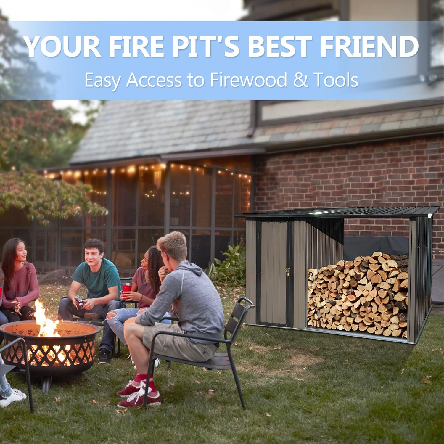 • 【2-IN-1 DUAL-ZONE DESIGN】Maximize Your Space: A smart, split design for firewood and tools; Store firewood in an open, easy-to-access section of your storage shed, while securely locking away sharp tools like axes in a safe compartment of your outdoor storage shed; Keep your outdoor space organized and safe!
