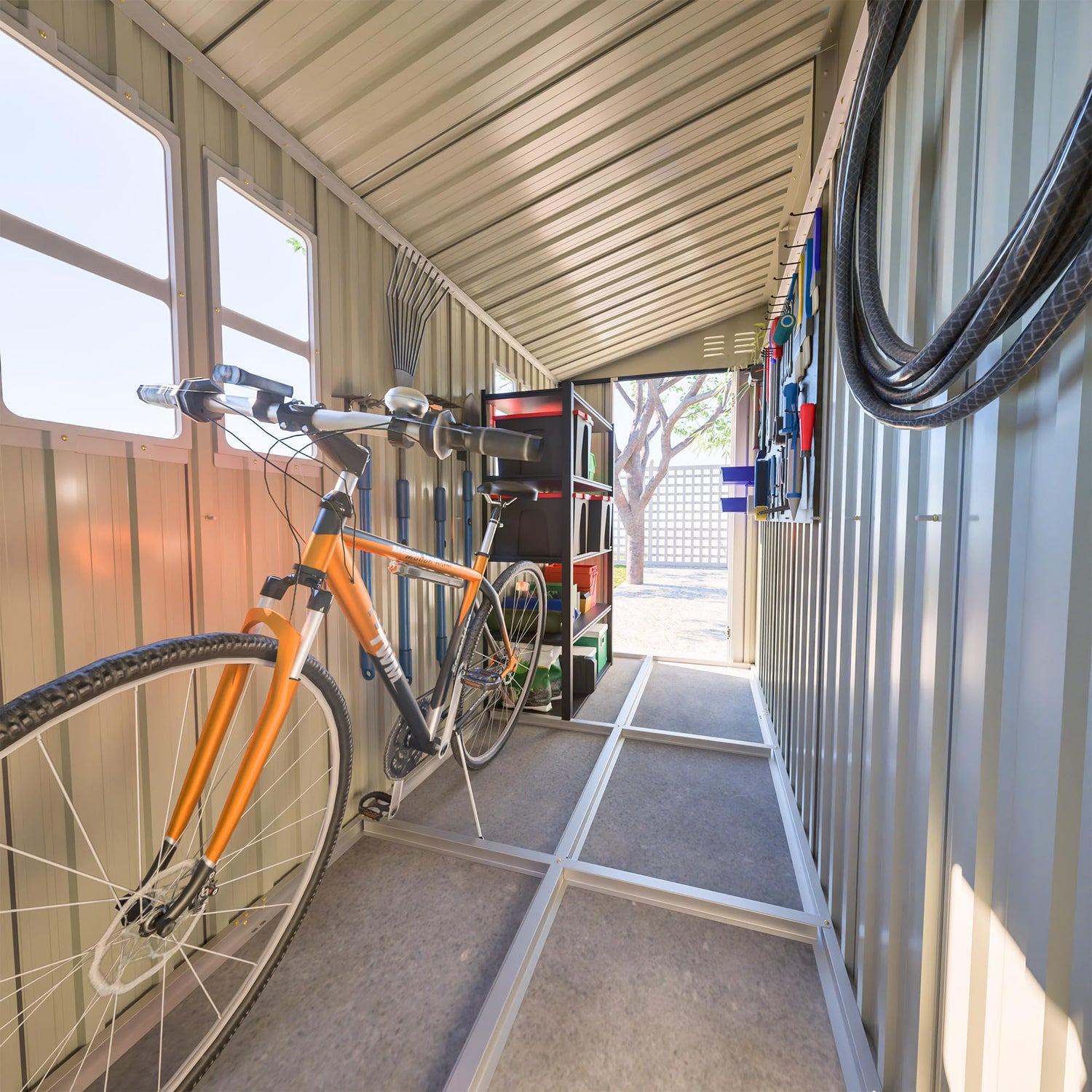 4x10 Ft Outdoor Heavy-Duty Shed, Metal Lean to Shed with Floor Kit and 2 Windows for Tools, Bikes, Patio Equipment, with Left/Right Door Options