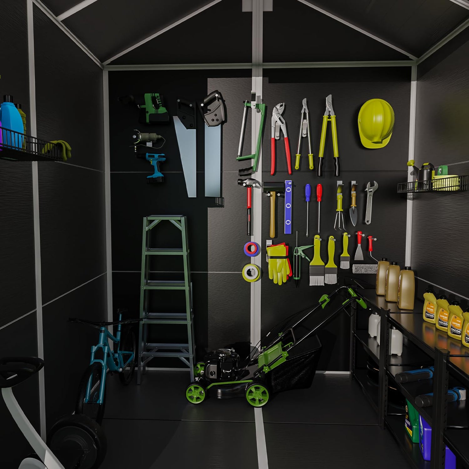 - Heavy-Duty Double-Wall Design: This rugged plastic shed features steel-reinforced dual walls and an impact-resistant floor for superior durability. The innovative construction provides enhanced waterproofing while resisting insects, corrosion, and wear. Built to withstand challenging weather, it's rated for winds up to 30 mph (Grade 6) and can support 6 inches of snow accumulation - making it a reliable year-round storage solution.