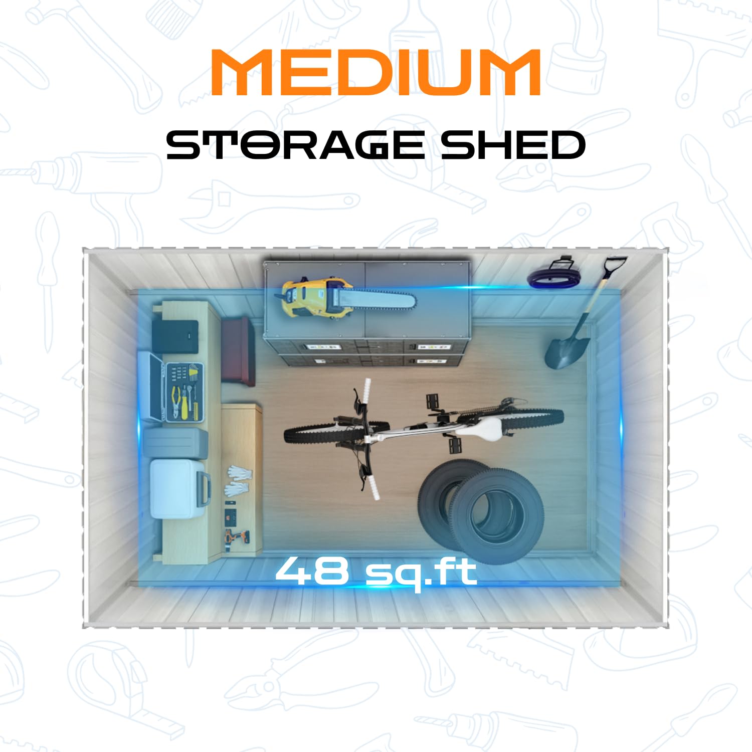 - ☔ [Sloped Roof for Superior Weather Protection] Designed for real-world conditions, the efficient sloped roof system guarantees optimal rainwater drainage, preventing damaging pooling and leaks. This key feature in our storage buildings and sheds clearance design minimizes maintenance and ensures your tools, equipment, and belongings stay consistently dry inside