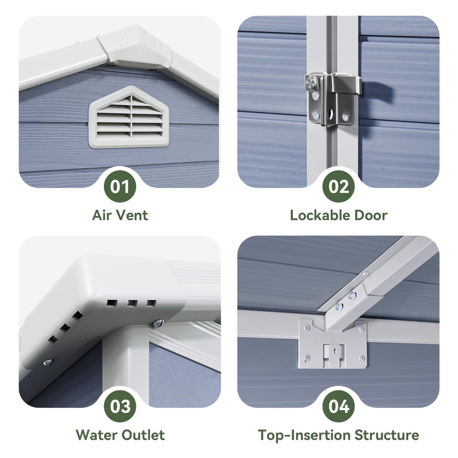 - 【Installation and delivery】 This plastic storage shed has been optimized many times to achieve a simpler installation with fewer screws, which takes only 30-40 minutes for 2 people to install.