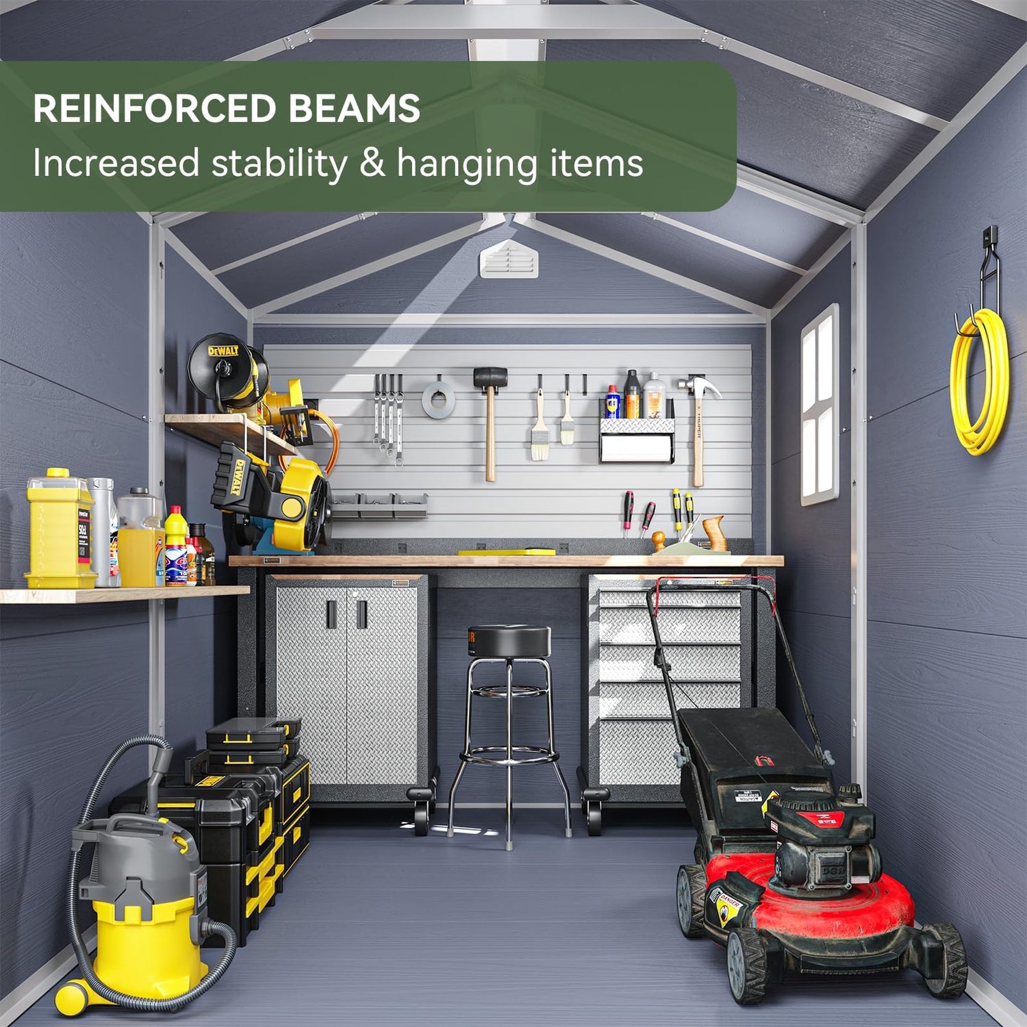 - 【Advanced Extrusion Craftsmanship】Constructed with premium 12mm double-layer thermoplastic resin panels, this resin storage shed with floor resists warping, cracking, and heavy impacts. It outperforms metal sheds with superior thermal insulation, maintains stable temperatures, and provides moisture-proof, anti-corrosion, and waterproof protection—perfect for safeguarding pets, plants, and tools