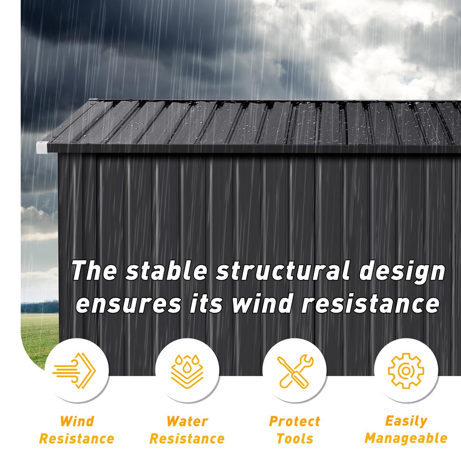 - Galvanized Steel Panels for Unmatched Strength and Durability: Crafted from high-strength galvanized steel, the panels of this tool shed are built to last. They effectively resist rust, ensuring long-term durability even in harsh outdoor conditions. Meticulously engineered for structural integrity, these panels offer exceptional compressive strength, providing a stable and safe storage solution for garden sheds, generator storage, and more.