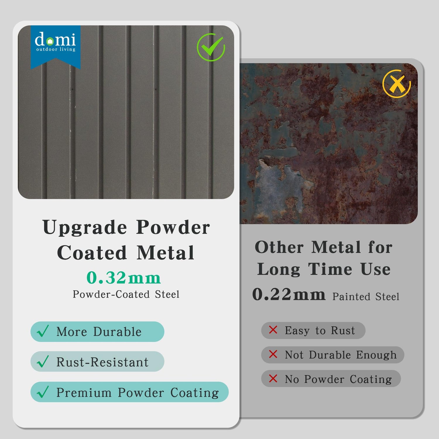 - Extra Large Storage Shed - Available in 15FT, 20FT, and 25FT options, domi storage shed offers a secure and weatherproof space to store cars, trucks, lawn equipment, bicycles, outdoor furniture, and more. It helps declutter your yard, garage, or basement while keeping everything organized and protected.