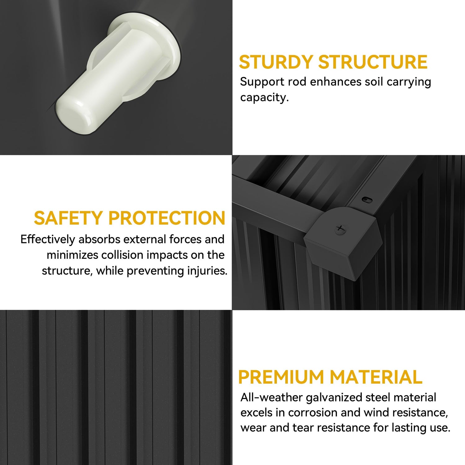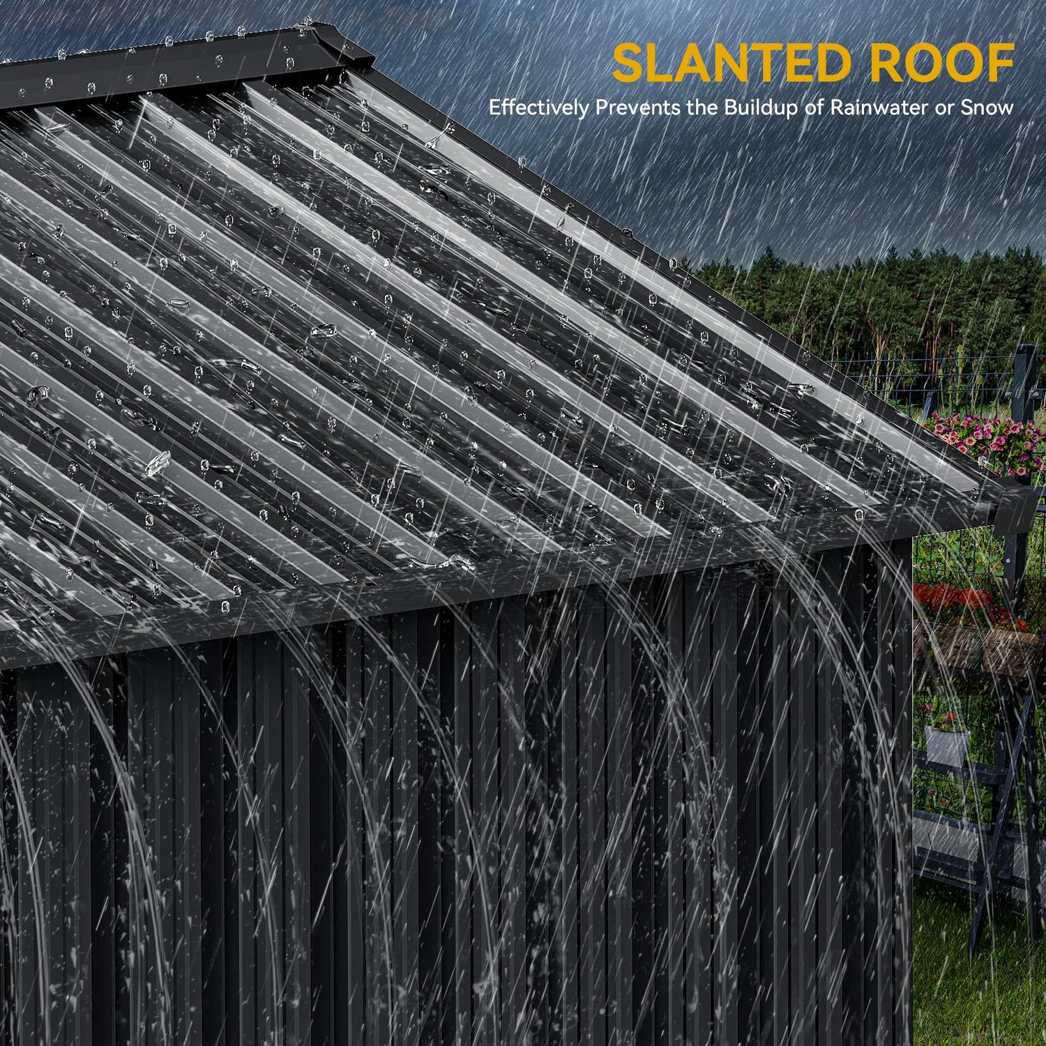 - ALL-SEASON SUITABILITY - The garden shed is constructed with thickened galvanized steel and a resilient frame, and offers impressive rust protection. The design includes overlapping wall panels and a tilted roof to prevent rainwater accumulation, enabling year-round use.