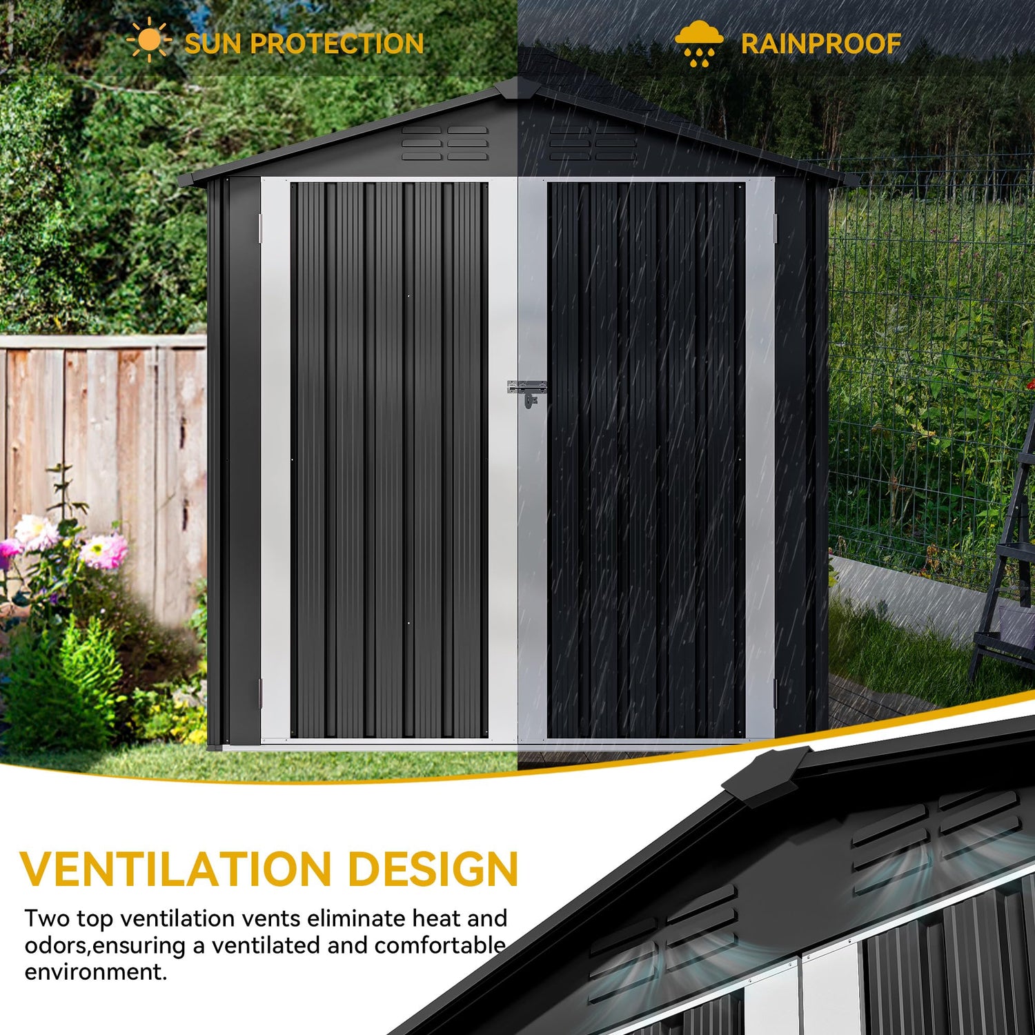 Details: DWVO 6x4ft Metal Outdoor Storage Shed, Large Heavy Duty Tool Sheds with Lockable Doors & Air Vent for Backyard Patio Lawn to Store Bikes, Tools, Lawnmowers,Dark Gray