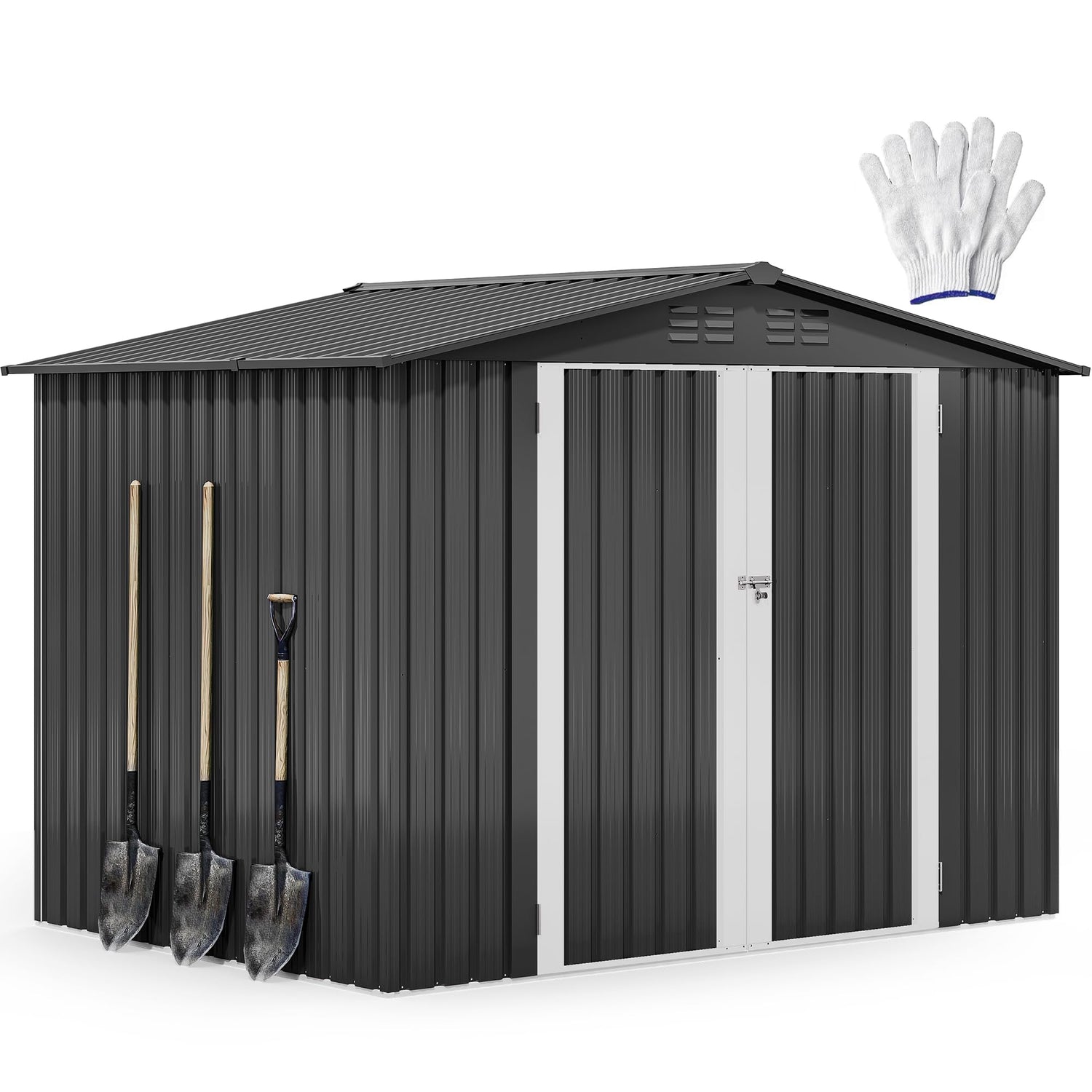 - Galvanized Steel Construction: The backbone of our outdoor storage shed is the high-grade galvanized steel, reinforced with 0.25mm thick panels; This combination ensures a resistance against corrosion, water, and wind, making it a durable choice for enduring the rigors of the outdoors over time