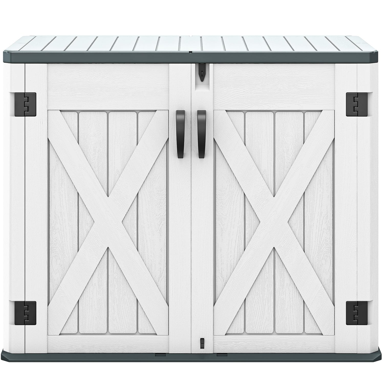 DWVO Outdoor Storage Shed, Weatherproof Resin, 35 Cu Ft Capacity, Horizontal Design, X-Shaped Lockable Door, Suitable for Bike, Garden Tools, Trash Cans, Light Gray