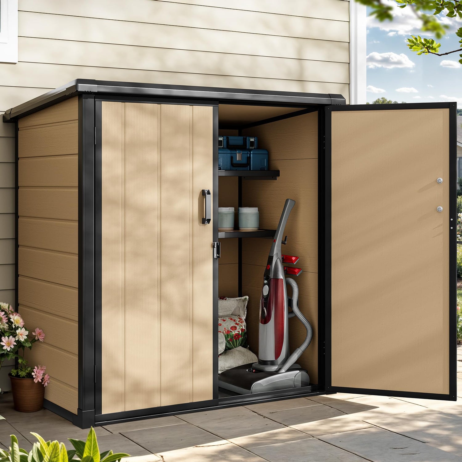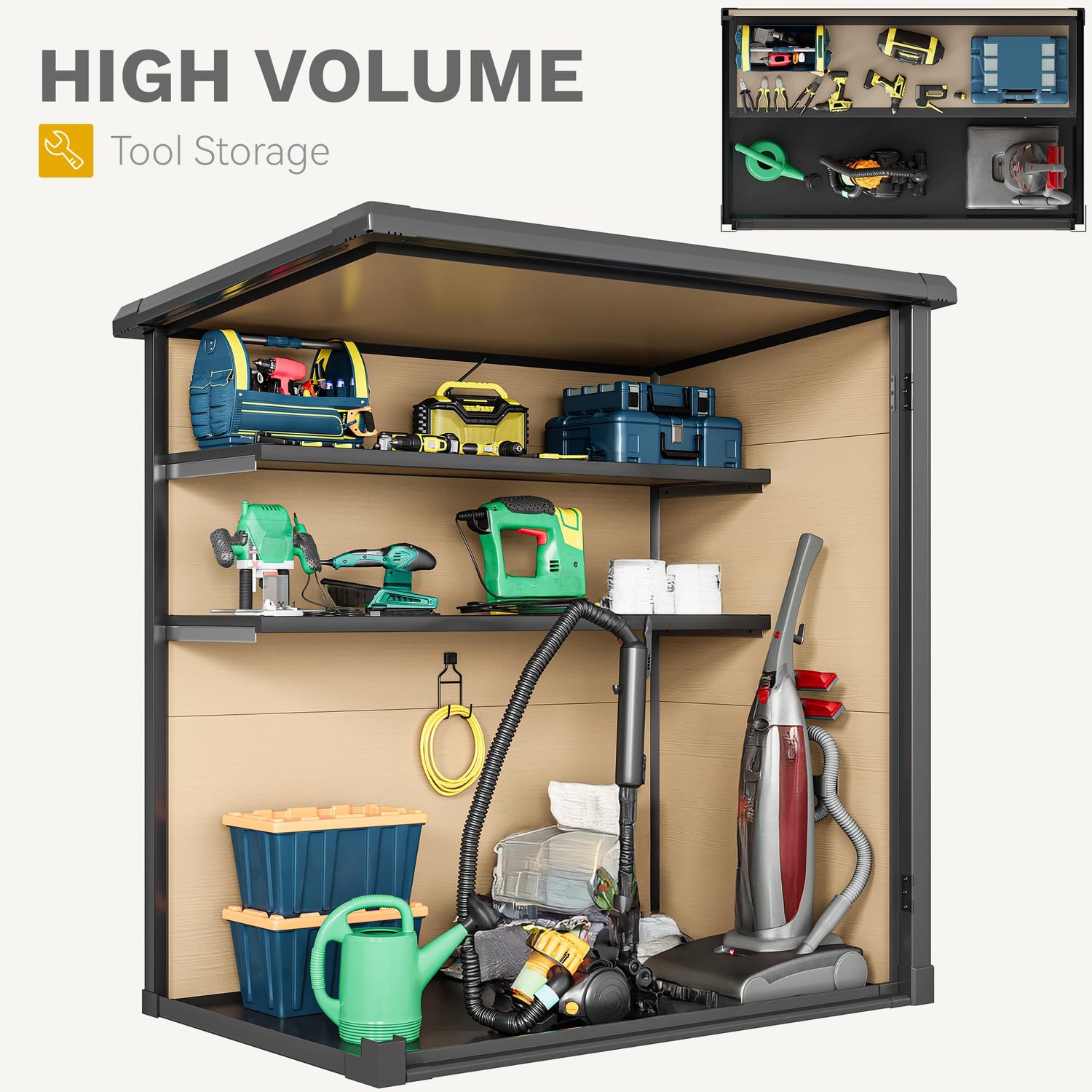 - Easy and Safe Access: This garden shed outdoor storage features double doors (23.6''L x 53.5''H each) for easy entry, even for large items; The lockable latch (lock not included) adds extra security for backyard, garage, or patio storage
