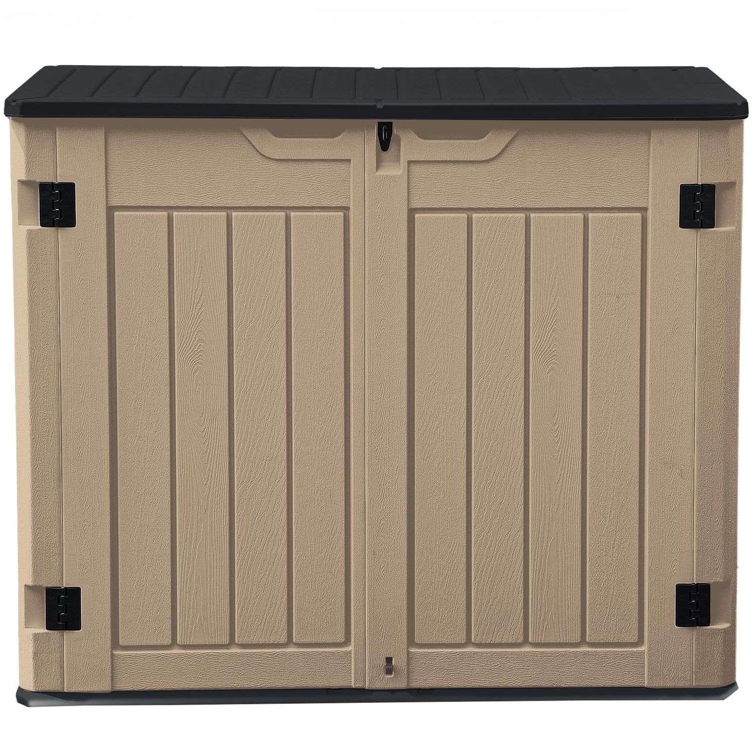 DWVO Outdoor Weather-Resistant Horizontal Storage Shed, 35 Cu Ft Capacity, Lockable and Waterproof, Suitable for Storing Garden Tools, Brown