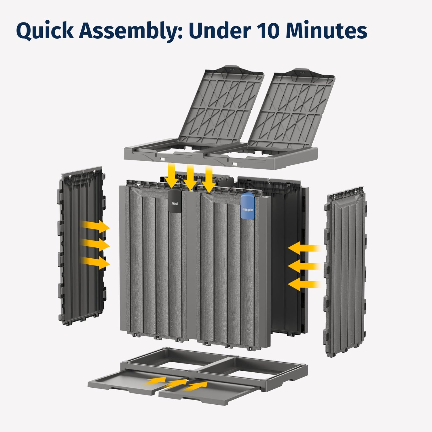 - ๐๐ป๐ฐ๐น๐๐ฑ๐ฒ๐ ๐ฅ๐ฒ๐บ๐ผ๐๐ฎ๐ฏ๐น๐ฒ ๐ช๐ฎ๐๐๐ฒ ๐ฆ๐ผ๐ฟ๐๐ถ๐ป๐ด ๐ฃ๐ฎ๐ป๐ฒ๐น๐: Comes with durable, removable sorting panels, allowing you to easily separate and manage recyclables and waste for a cleaner, more organized outdoor space