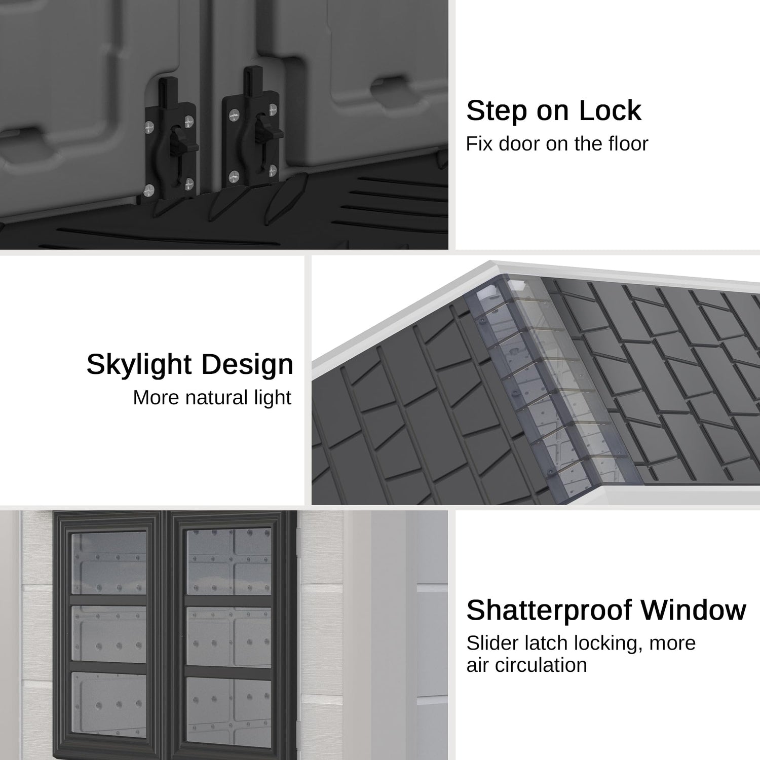- NATURAL LIGHT AND AIR: A unique skylight and window provide natural light and ensure air circulation in the shed without compromising structural integrity.