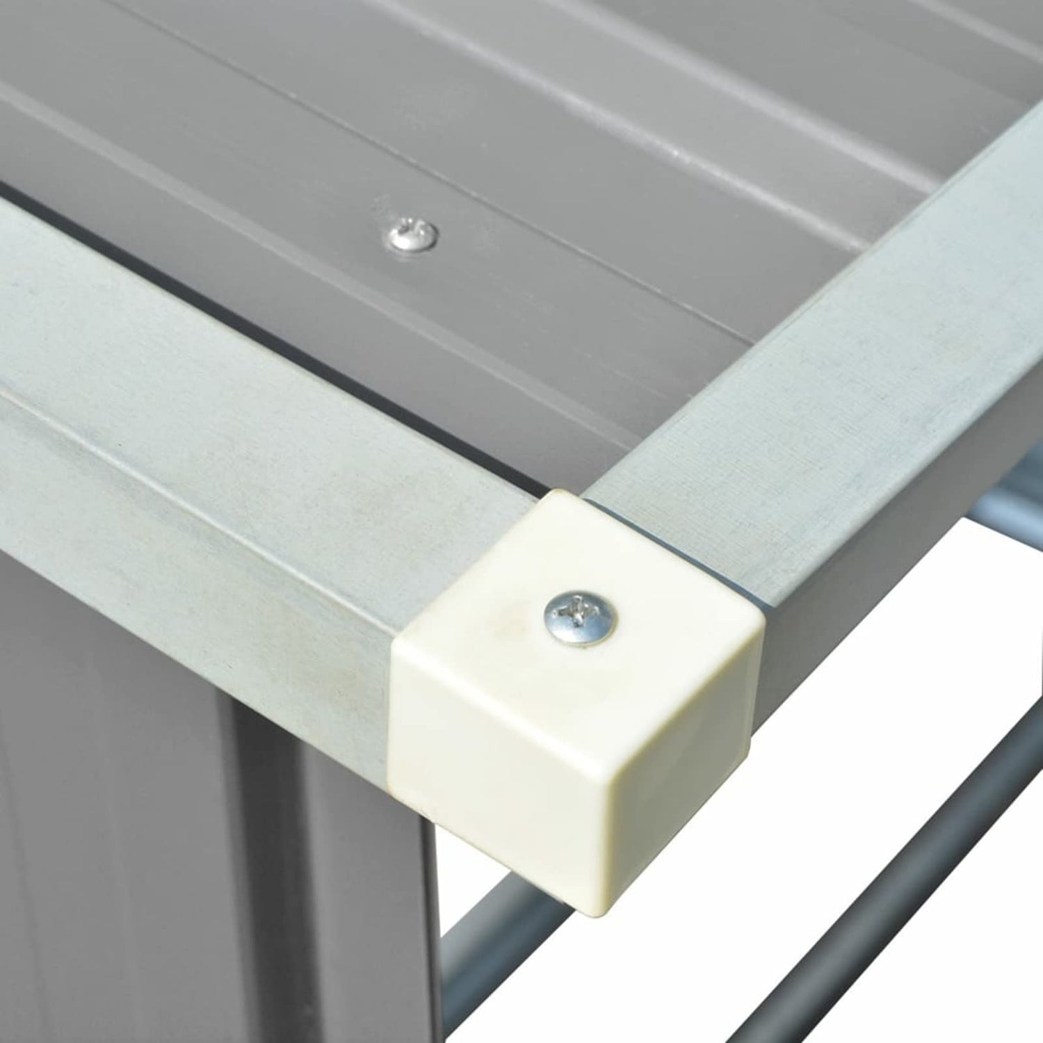 Good to know: To prevent damage from heavy snow buildup, we recommend clearing the roof regularly during winter. Color: Gray Material: Galvanized steel Dimensions: 64.2" x 32.7" x 60.6" (L x W x H) Front height: 55.9" Back height: 60.6" Capacity: 70.6 ft鲁 Features extra tubes on two sides