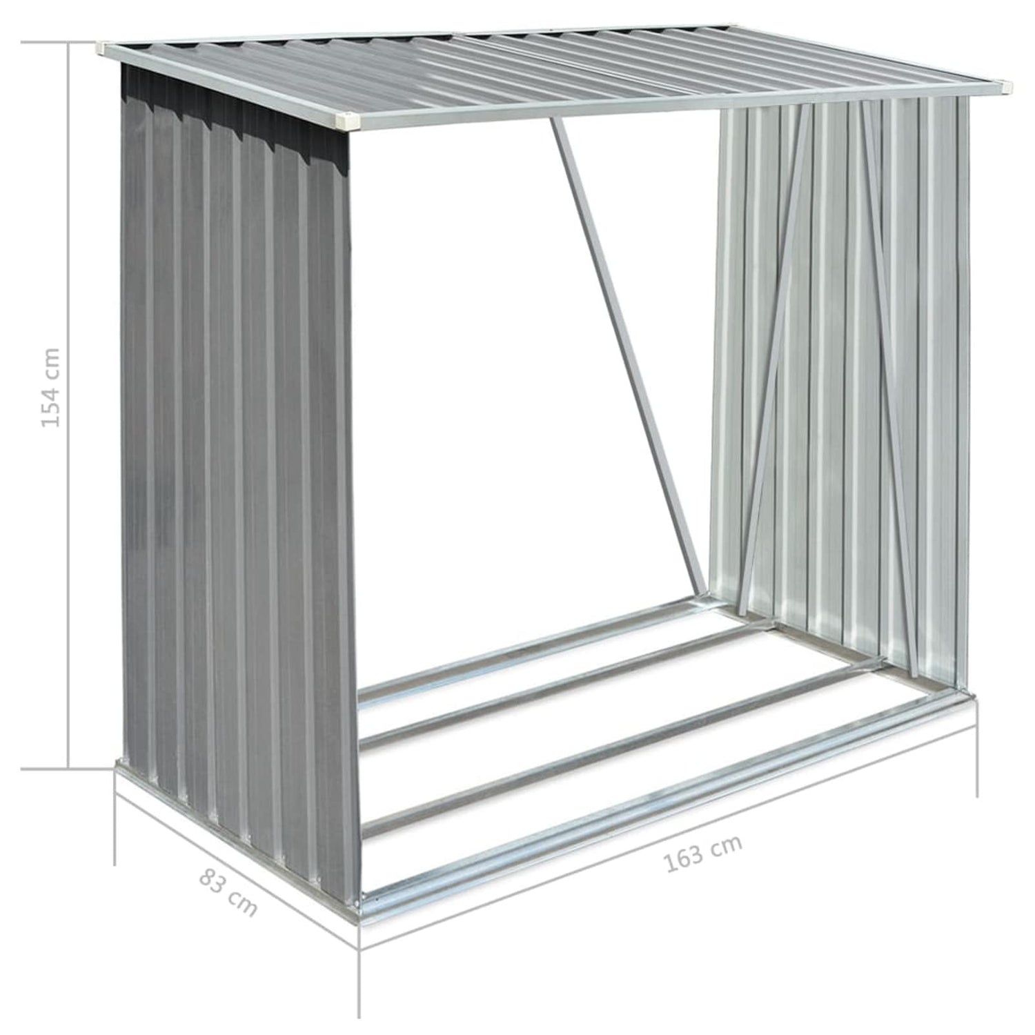 It has a stable construction with steel support bars and extra tubes on both sides. As it is made of galvanised steel, the firewood storage shed requires minimal maintenance and is very durable. This log store includes a steel floor frame for added stability and raised floor slats to keep the logs ventilated and dry. Rainwater will automatically be drained from the roof thanks to its sloping design. Our firewood shed is easy to assemble.