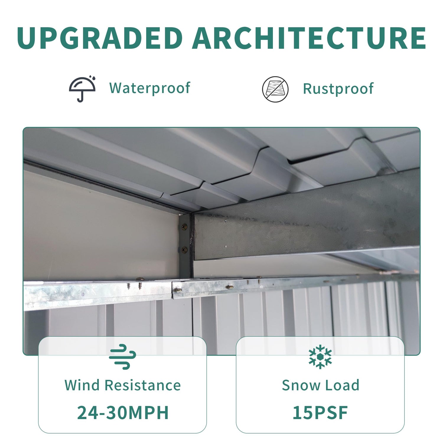 - Heavy-Duty Galvanized Steel Build:Engineered with a rust-resistant steel frame and UV-protected galvanized panels, this shed endures rain, snow, and sun while resisting corrosion. Built to last for years in any climate.