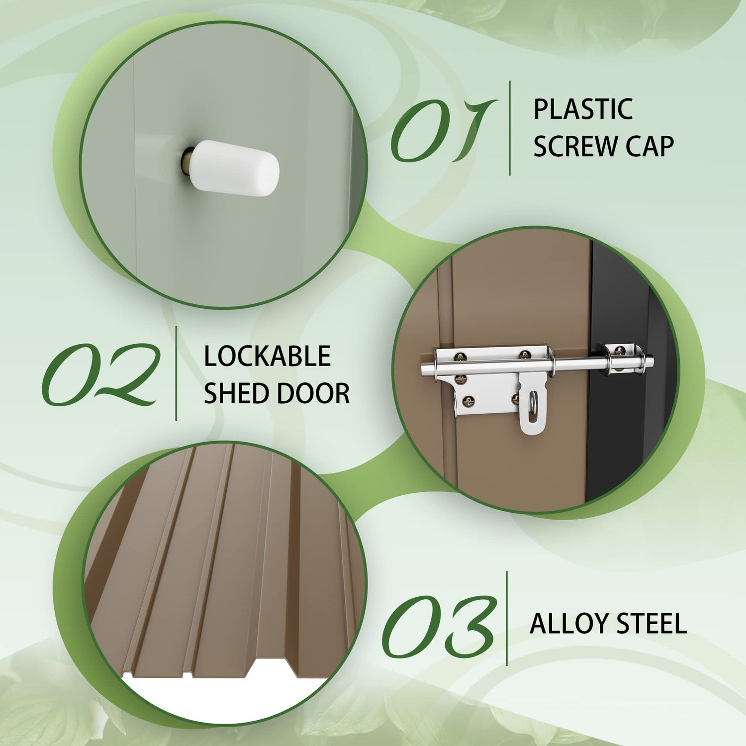 - Sturdy & Safe: The metal shed is made of galvanized steel with stronger tensile strength and hardness, and the structure of the shed is in accordance with the mechanics, which ensures the solidity and stability of the shed. In addition, we have optimized the safety of the shed. We provide plastic protection caps for each screw to prevent someone from being injured due to the exposed screws.