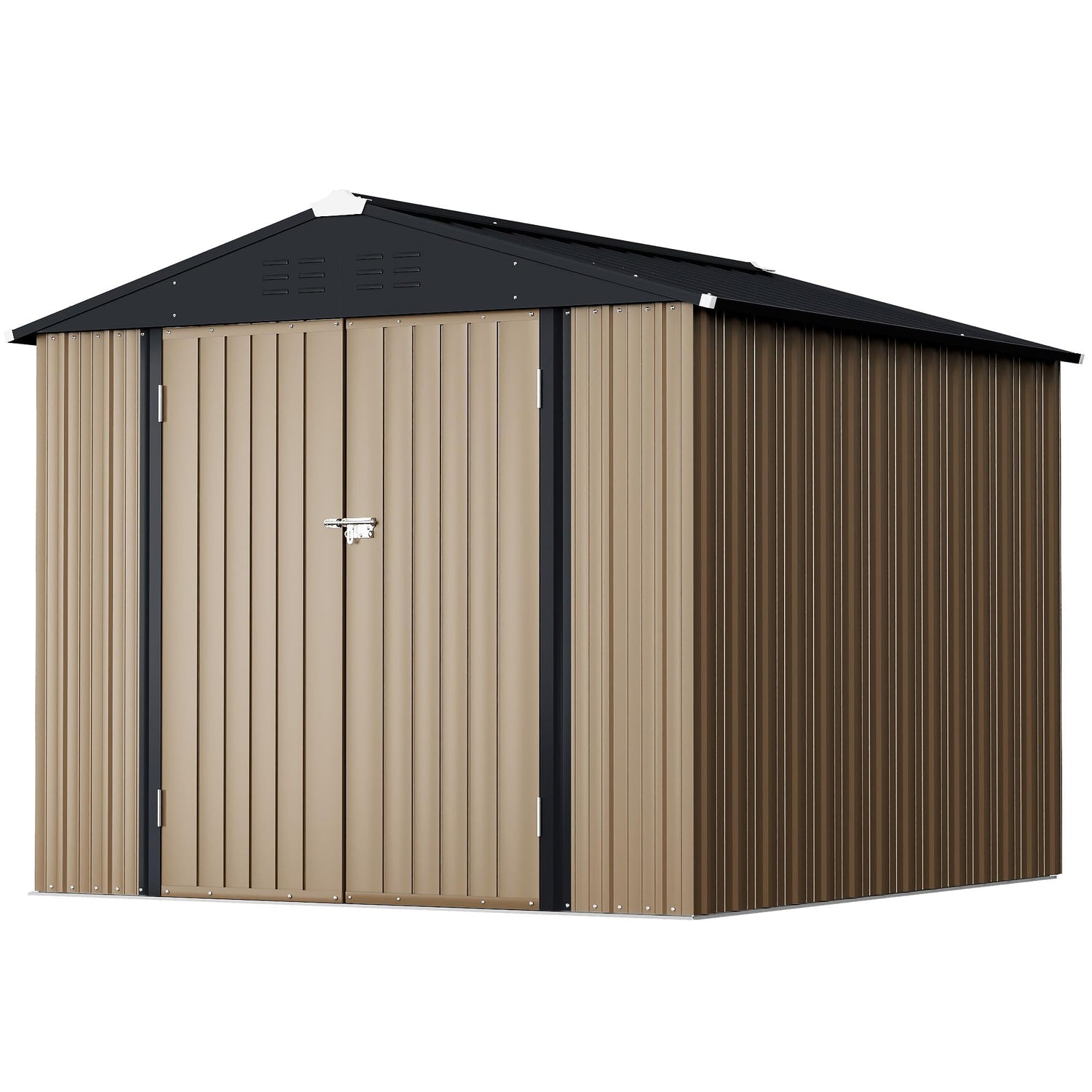 GUNJI 8 x 6 FT Shed Outdoor Storage Shed Metal Garden Shed with Lockable Door Outside Waterproof Tool Shed for Backyard, Patio, Lawn (Brown)