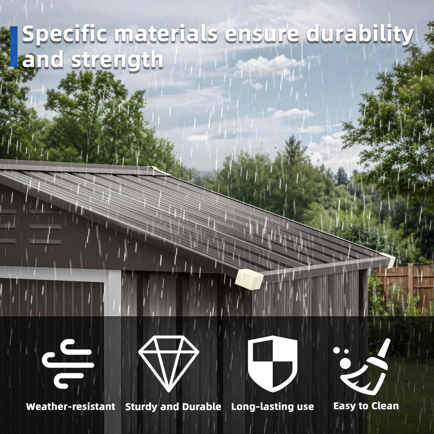 • Durable Construction: Constructed with high-quality materials, this storage shed is built to withstand various weather conditions, ensuring long-lasting durability and protection for your tools.