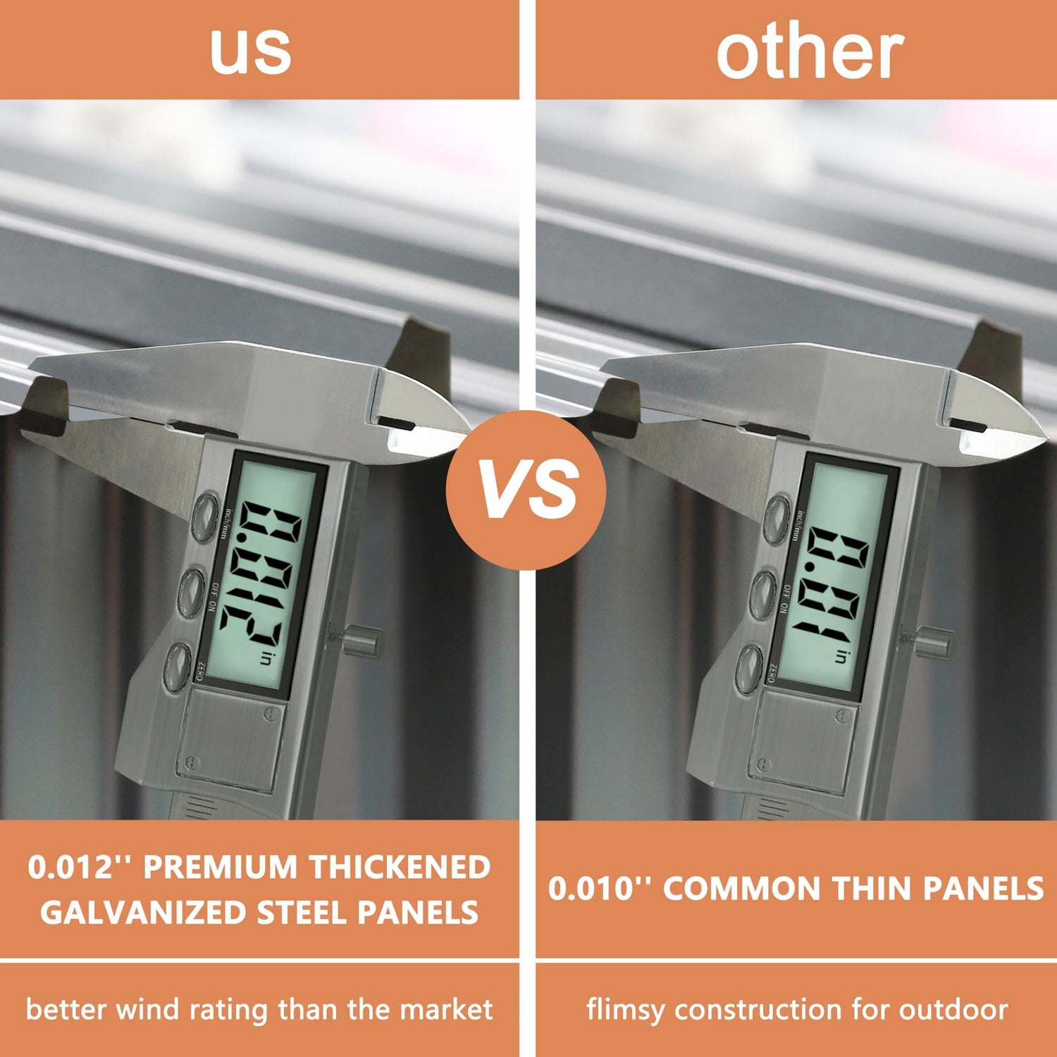 • 【Practical and Safe Outdoor Storage Shed】Different from other outdoor storage sheds, we upgraded the panels of this metal storage shed to 0.012'' premium thickened galvanized steel for better wind-resistant than other sheds for outdoor. The hinged doors are designed with fixed tubes for increasing the stability of the storage shed doors. With reinforced galvanized metal frame and sturdy construction, this tool storage shed is of high quality and has a long service life for outdoor.