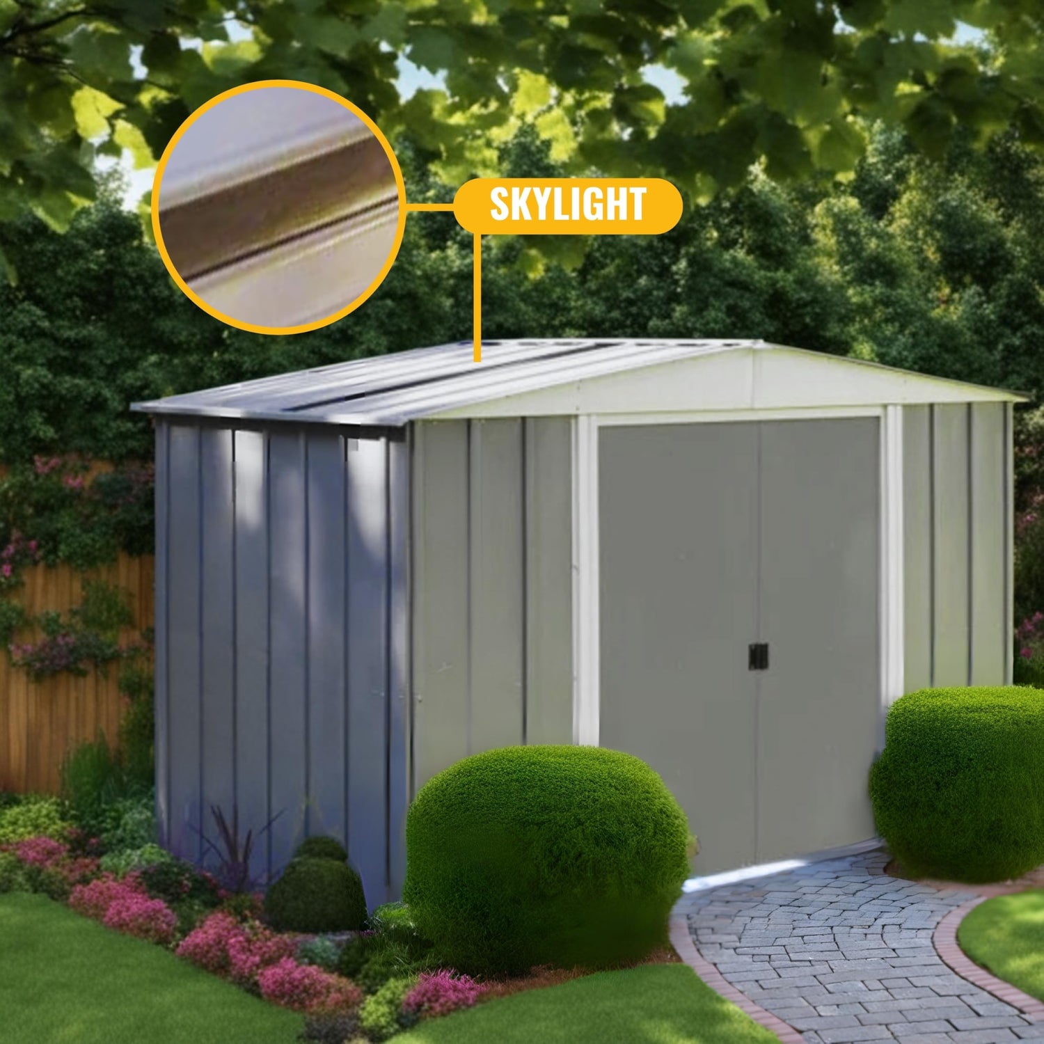 New Yard 10x6 Gable-Roof Metal Shed–Durable Outdoor Storage Shed for Lawn Equipment, Pool Supplies, Bicycles, Tools, and Garden Storage – Weather-Resistant and Easy Assembly Gray w/Skylight