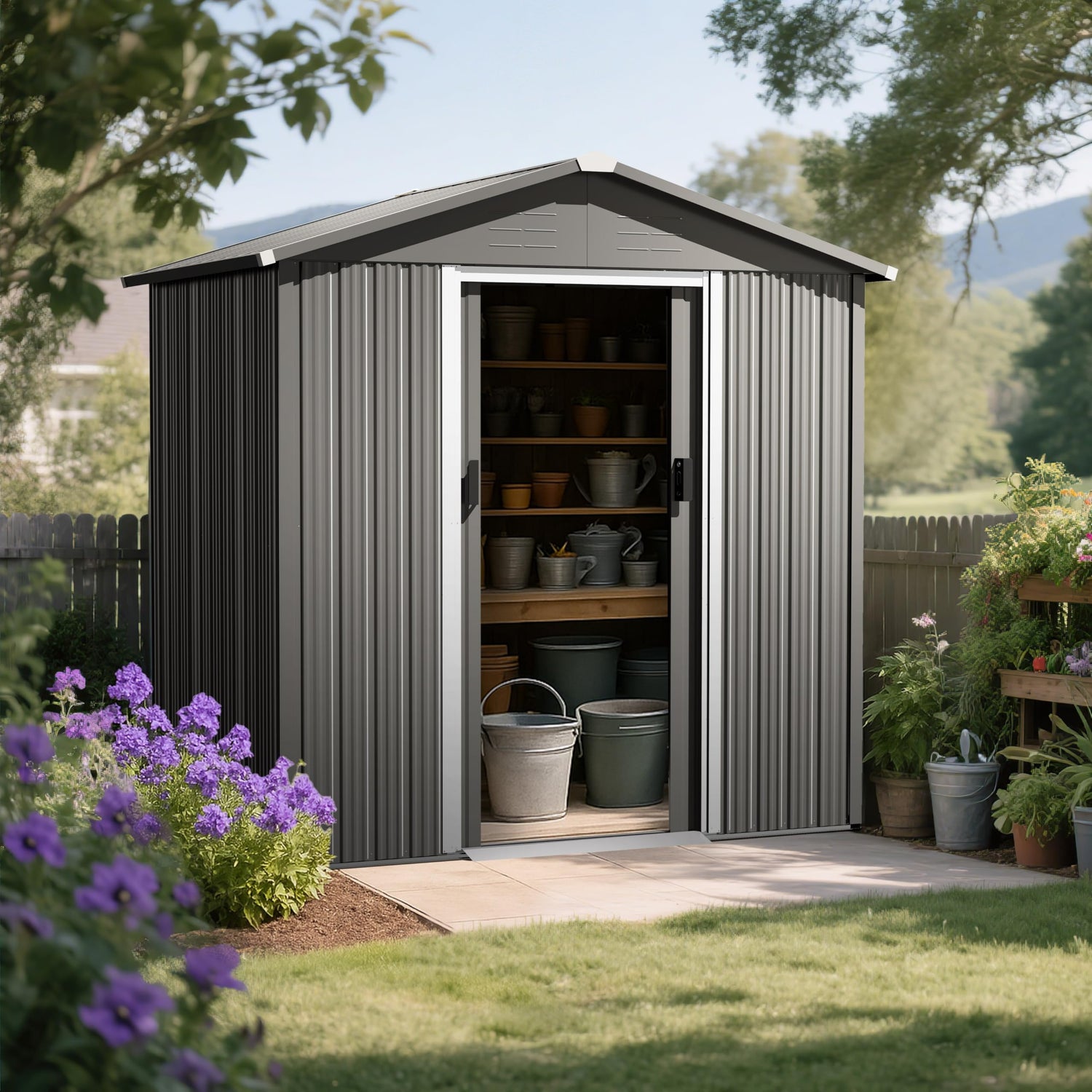 - OPTIMIZED VENTILATION AND EASY ACCESS:Professional airflow system maintains optimal conditions for storage outdoor. Sloped threshold enables smooth transport of equipment without strain. Compatible with patio storage setups