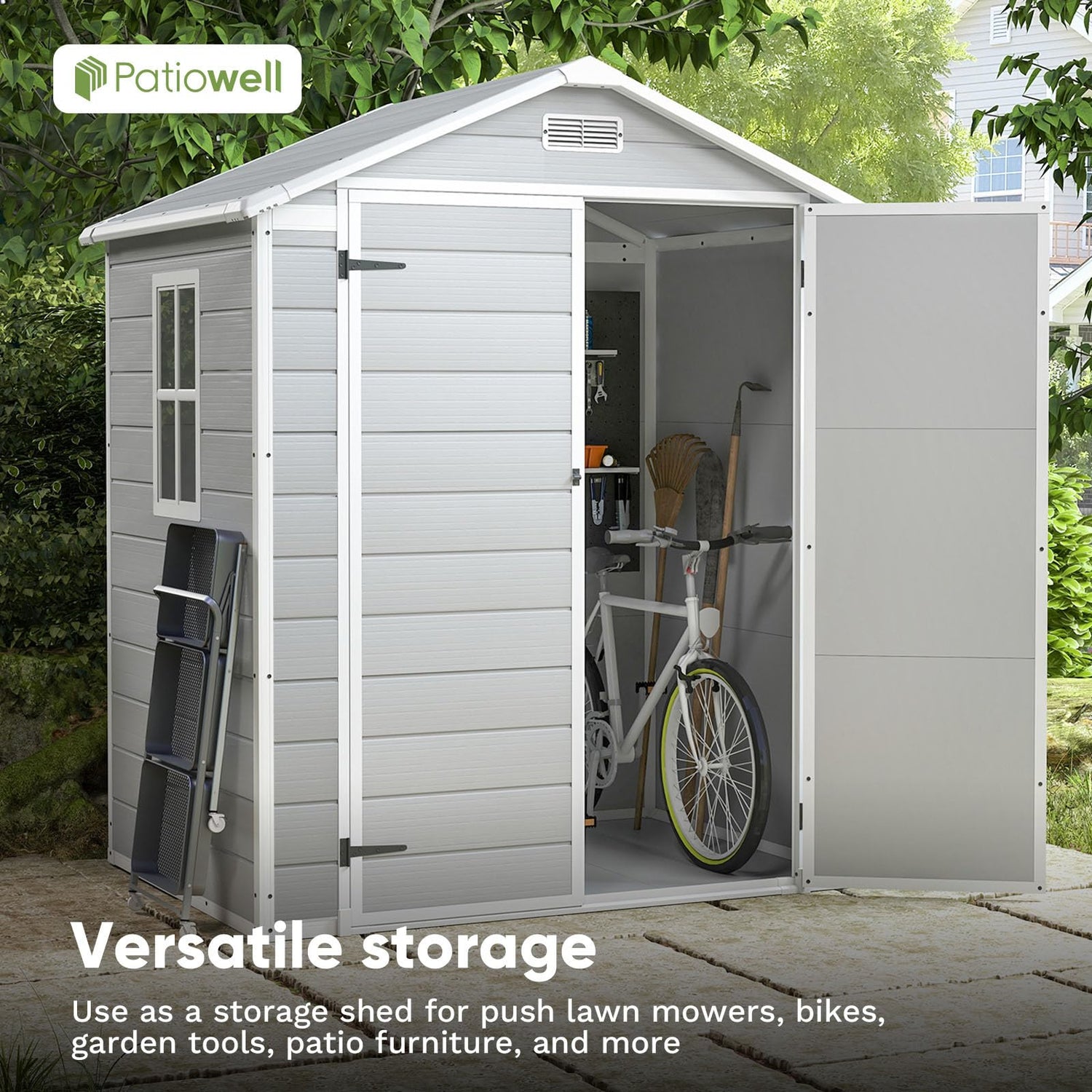 - 【Spacious Storage 】Patiowell 6x4FT Resin Outdoor Storage Shed, a versatile and durable storage solution for your outdoor space. Constructed from durable resin material, this shed is built to withstand the elements and protect your belongings year-round.
