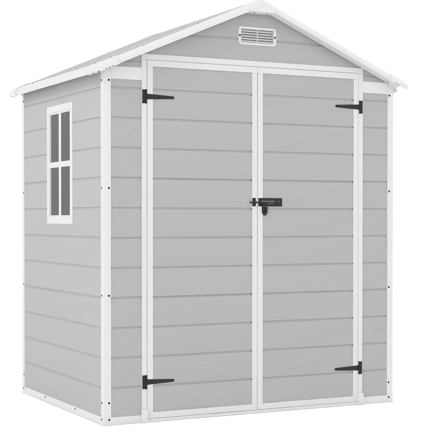 Patiowell 6x4 FT Plastic Outdoor Storage Shed, Resin Shed Perfect to Store Patio Furniture, GardenTools Bike Accessories, Beach Chairs and Lawn Mower,Light Grey