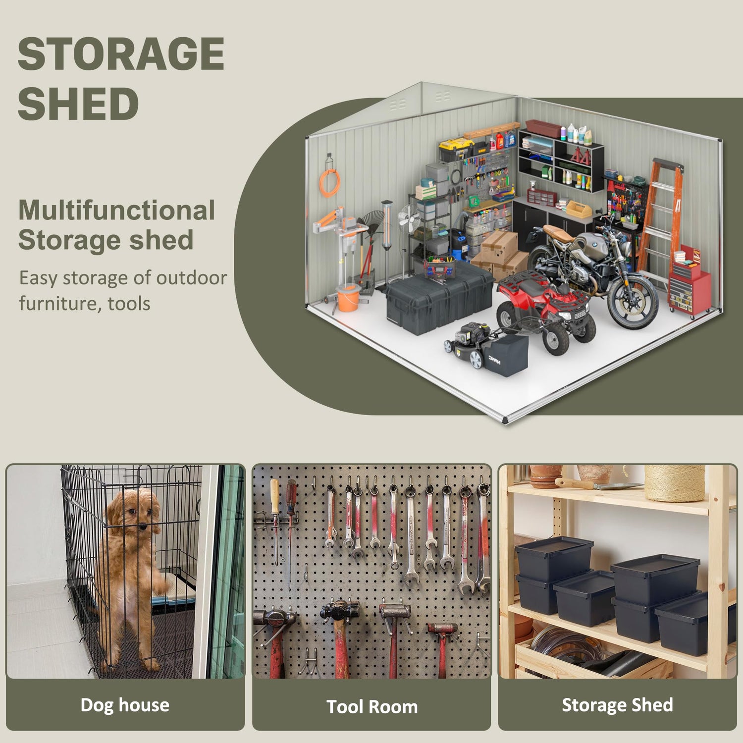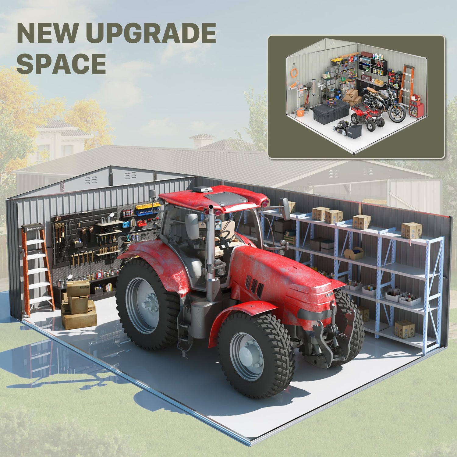 - VERSATILE USAGE: More than a metal shed, effortlessly transforms into a workshop, equipment storage room, or compact garage to meet diverse storage and project needs.