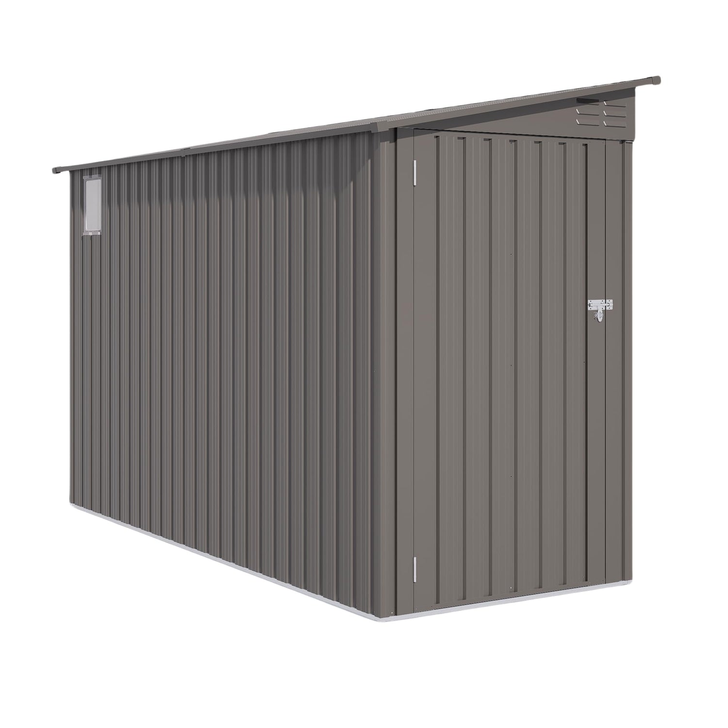Vigo huseeo 4 * 9.2 FT Outdoor Storage Shed, Galvanized Steel Garden Shed with Lockable Door & Window, Waterproof Metal Tool Storage for Garden, Backyard, Patio, Lawn(Gray)