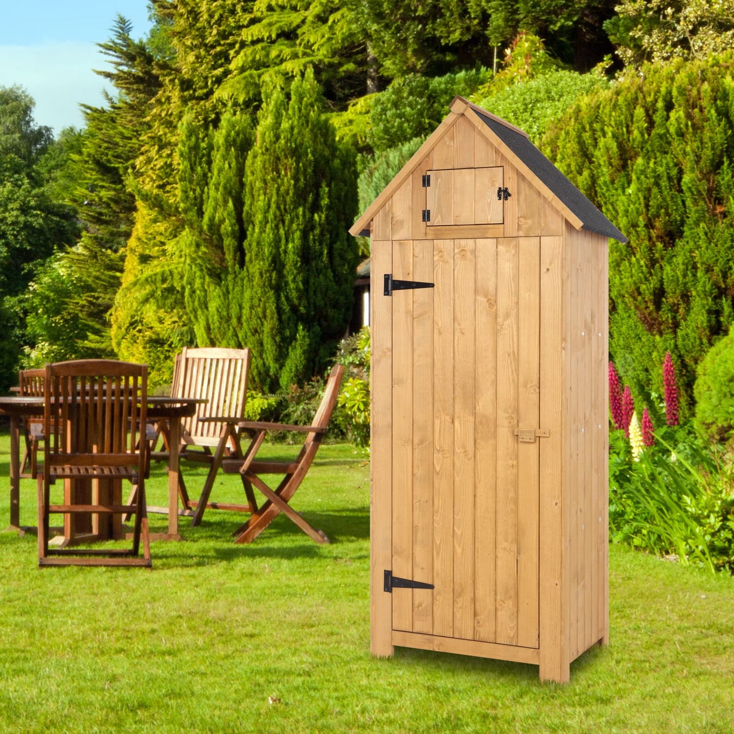VINGLI Outdoor Wooden Storage Shed, Garden Shed Outside Tool Cabinet with Safety Latch, Patio Storage Organizer (Teak)