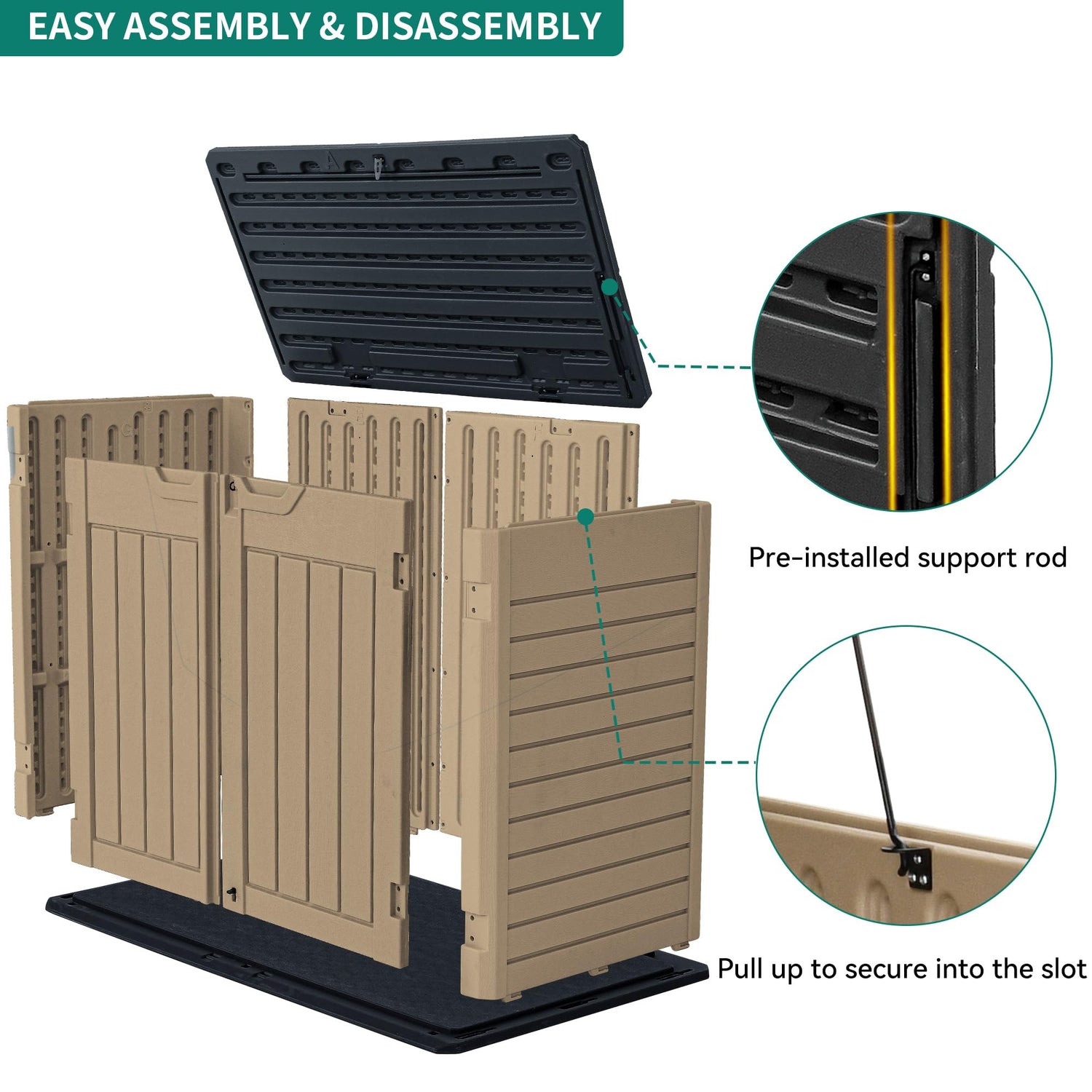 - ALL-WEATHER RESISTANT- This storage shed is made from weatherproof resin for UV protection, all-weather use, easy cleaning and maintenance; Alluring wooden texture will not fade and the innovative lid design keeps water out