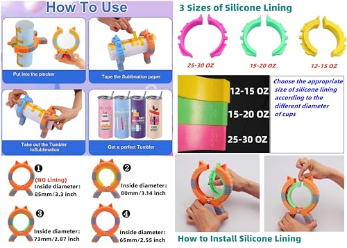 - πΊγWIDE COMPATIBILITYγ: Professional Sublimation Tumblers Pinch - Consummately designed sublimation tumblers pinch flawlessly suits to 15oz-30 oz sublimation tumbler. This sublimation paper cup holder is suitable for sublimation cups, mugs, cups and blanks with a cup diameter of approximately 67mm-82mm(3.1 in), as well as heat press parts and accessories and sublimation cup coatings.