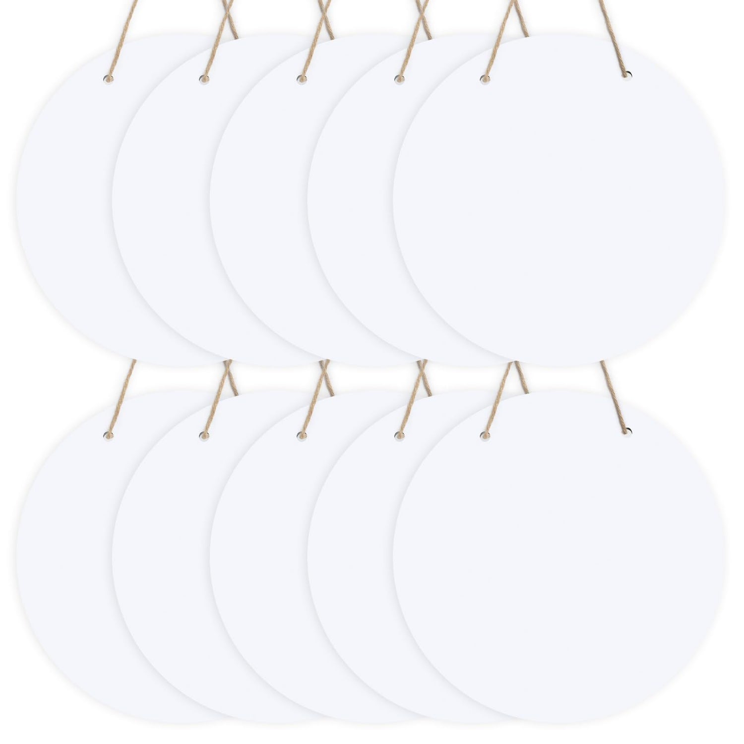 10 Pcs 10" Round Sublimation Door Hanger Blanks, White Hardboard MDF Wood Blanks, Unfinished Circle Sublimation Sign Blanks with Rope for Wall Hanging, Heat Press Machine Printing, Craft DIY Projects
