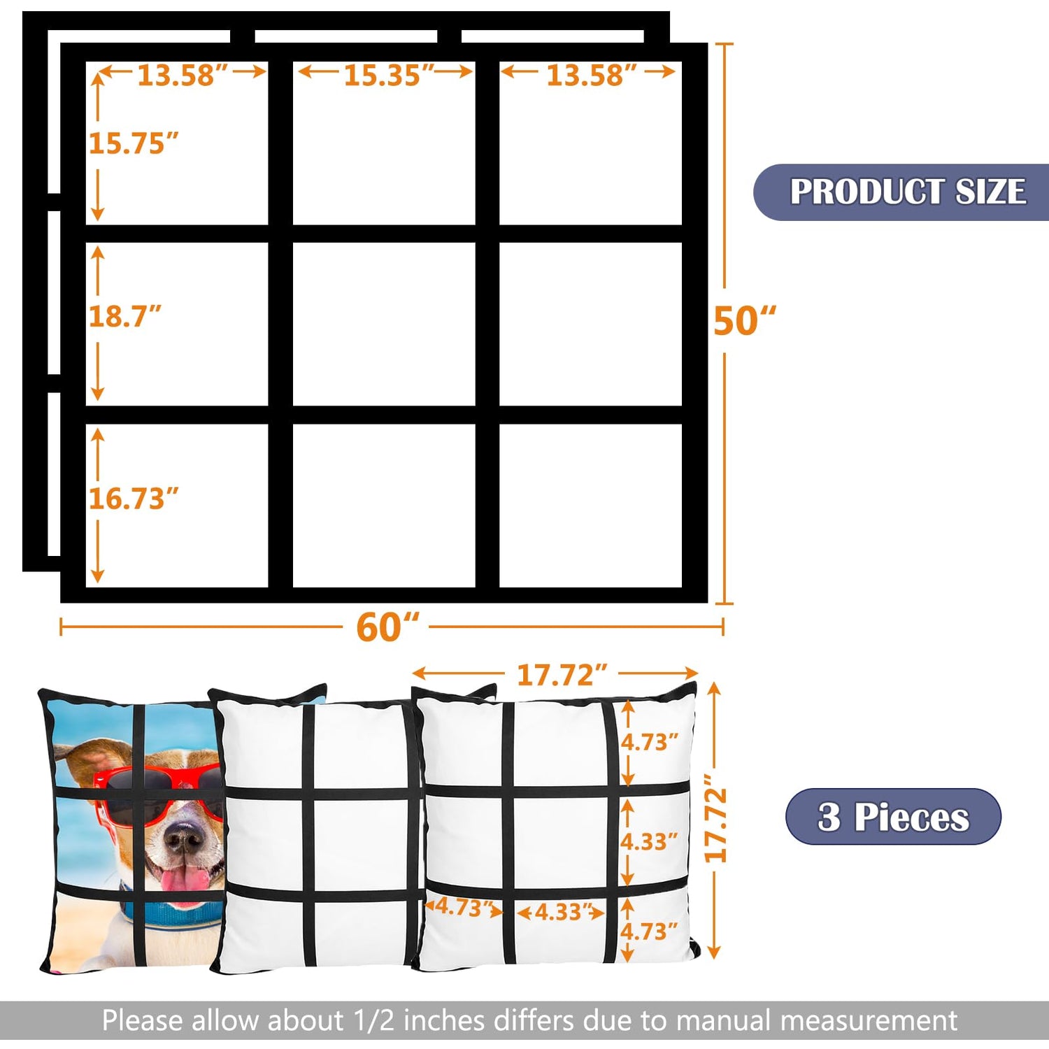 - SUPER SOFT FLANNEL: 2 pieces of 60"x50" sublimation blankets and 3 pieces of 18"x18" square pillowcases with 9 blank panel design will be shipped to you, those blanks panels can totally satisfy your needs for heat pressing.Our sublimation blankets and pillowcases made of high-quality soft flannel, Lightweight, Durable And Compact, Super Soft and Skin-friendly. Not easy to shrink or wrinkle, which is suitable for keeping warm and home decor, can be applied throughout the year.