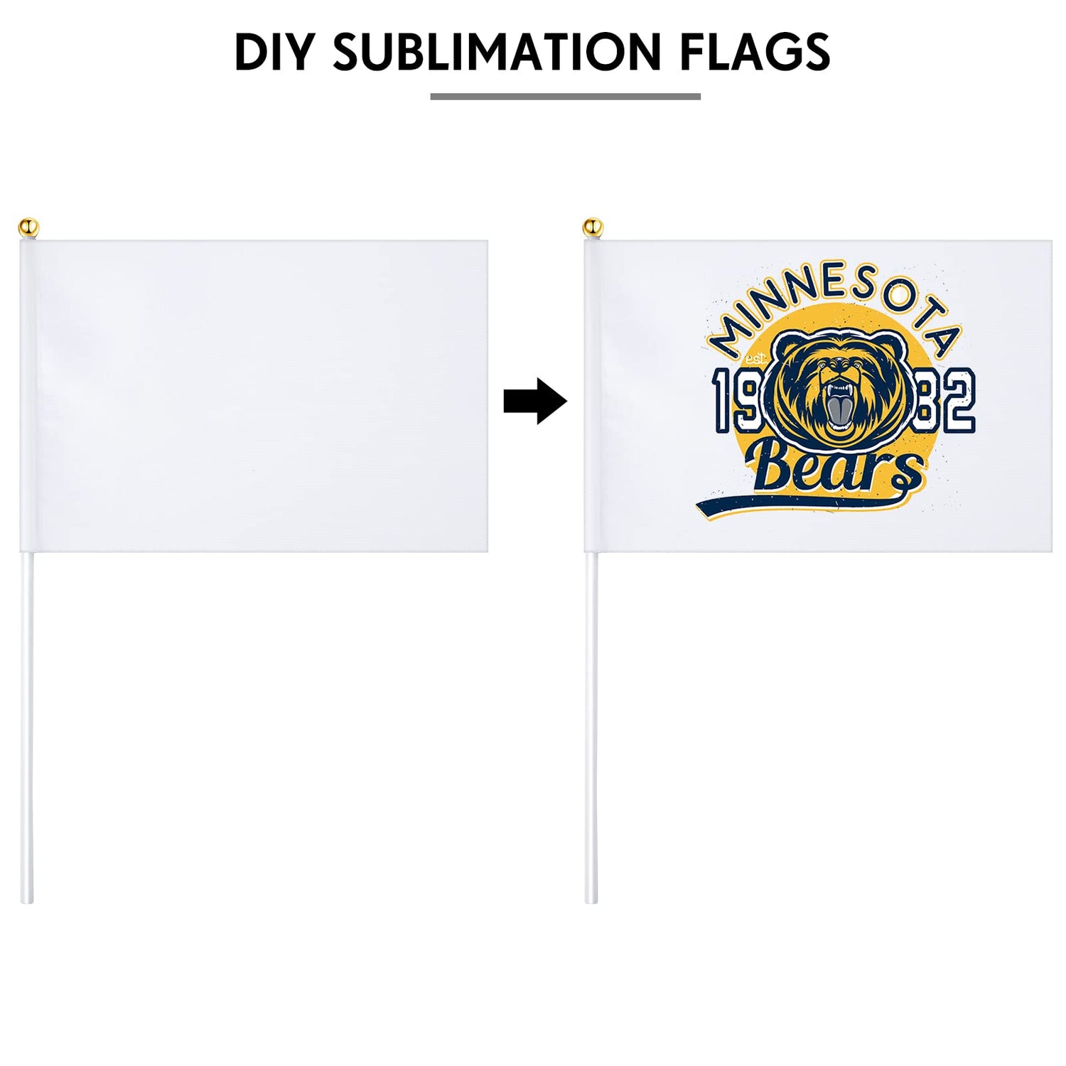 - Portable Size: the mini sublimation flags are approx. 14 x 21 cm/ 5.51 x 8.27 inches and the handles are approx. 30 cm/ 11.81 inches, appropriate size for you to use, besides when you hold them on your hands, they will catch the attention of others quickly