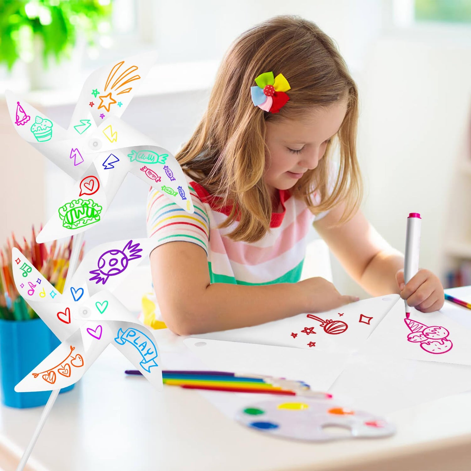 • 【Unleash children's creativity】 Make your own pinwheels, Kids love adding their own artwork to these pretty Do It Yourself Pinwheels craft kit.These fun and easy DIY blank pinwheels craft for Kids are the perfect way to get your little ones creative juices flowing!