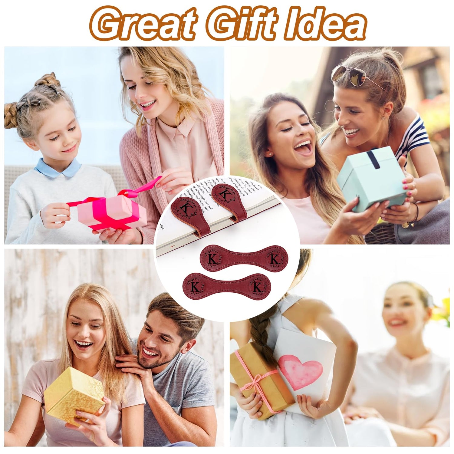 2PCS Magnetic Bookmarks, Magnetic Leather Bookmark with Initial, Double-Sided Magnetic Bookmarks for Women, Bookmark Clip Gift for Book Lover Readers Men Women Teachers Students, Book Accessories (K)